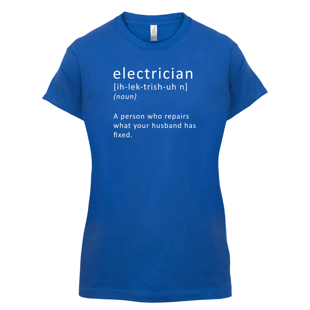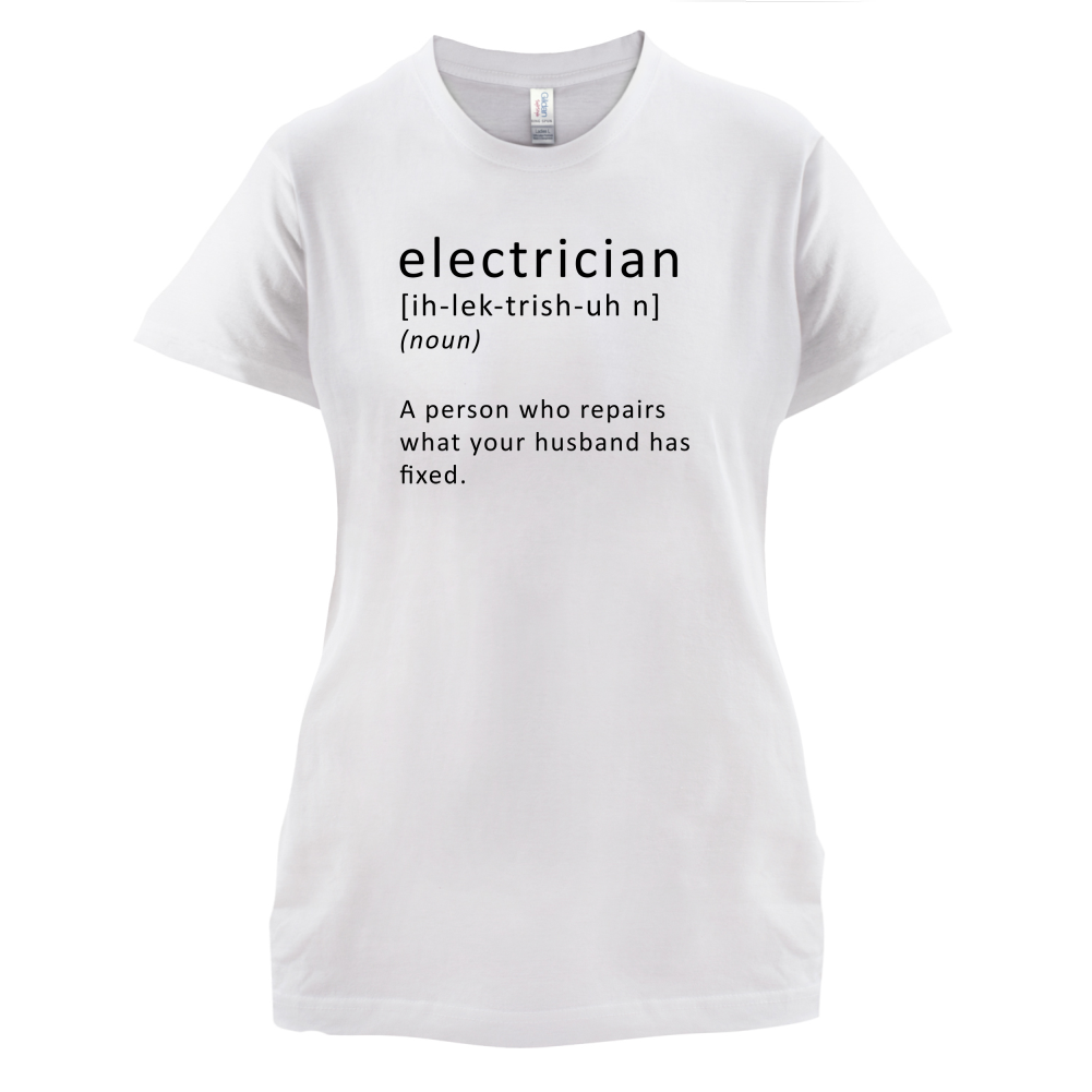 Women's Slim fit T-shirt, our ladies Electrician Definition t-shirt is printed on our popular 150 GSM ring spun womens garment. Available in 11 colours and from Size Small to XXL.