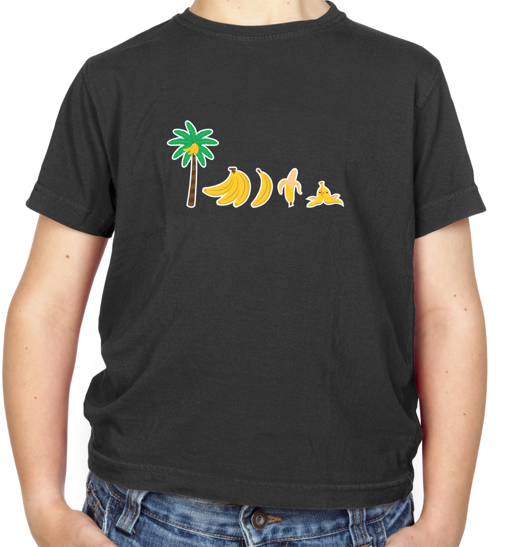 Kids T-shirt: Our Kid's Unisex style Evolution Of Banana T-shirt is printed on our 150 GSM ringspun cotton garment and is available on 8 different colours.