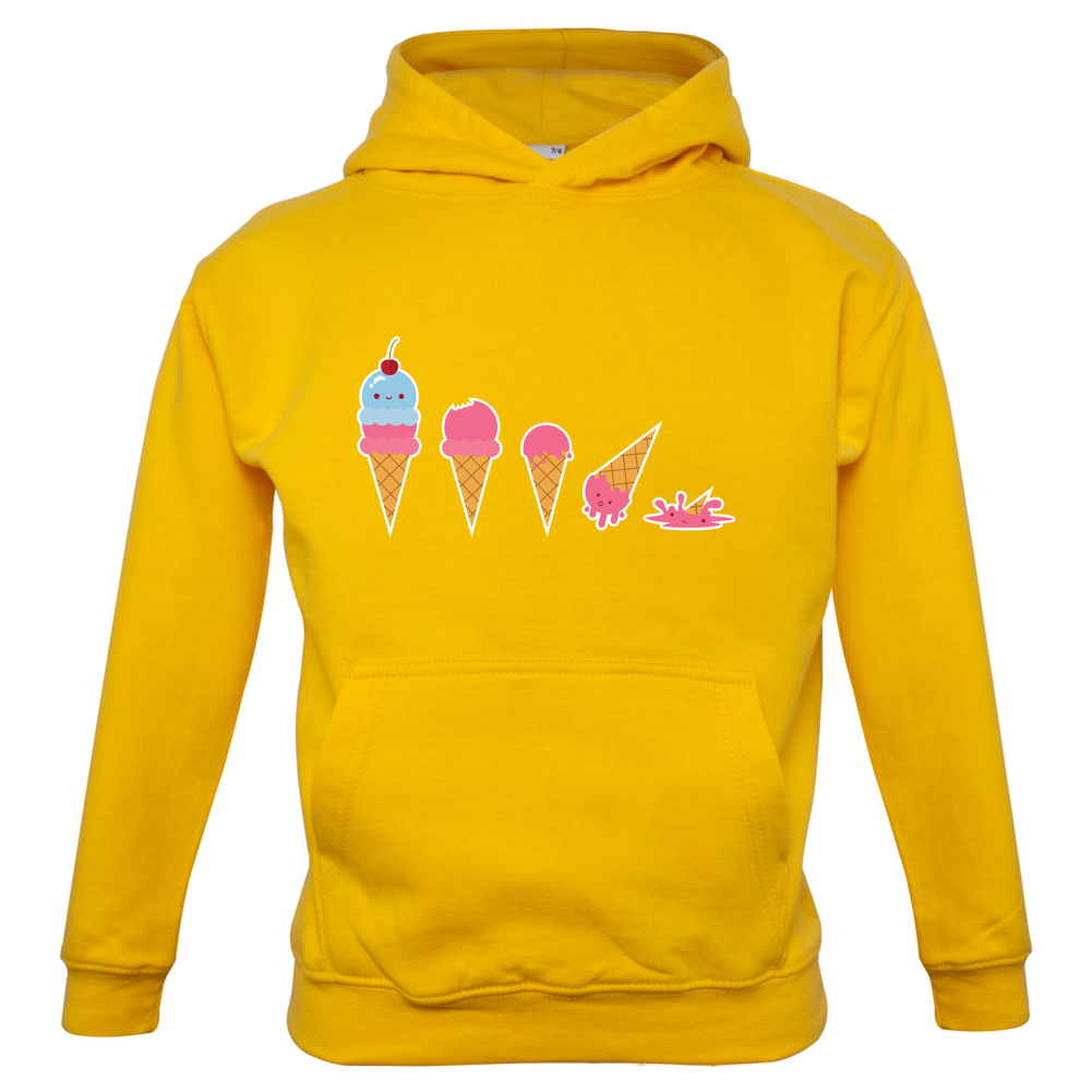 Kids Hoodie: Our kids unisex style Evolution Of Ice Cream Hoodie is printed on our 300 GSM kangaroo pocket hooded top and is available on 7 different Colours.