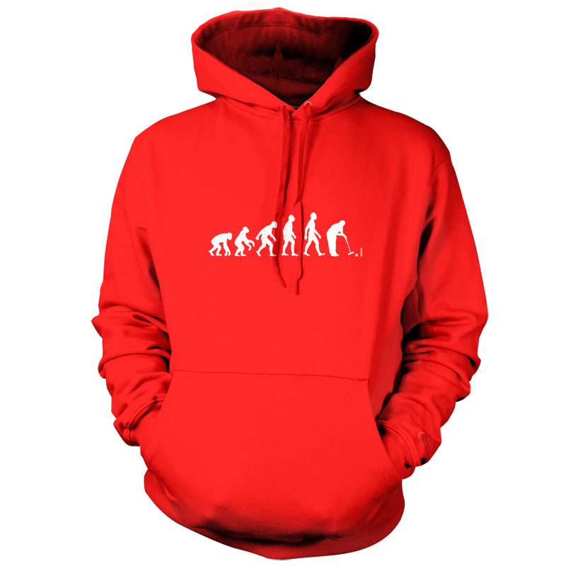 Unisex Hoodie, Our unisex style Evolution Of Man Croquet Hooded top is printed on our 280 GSM kangaroo pocket garment and is Available in 9 Colours and with sizes Small to XXL.