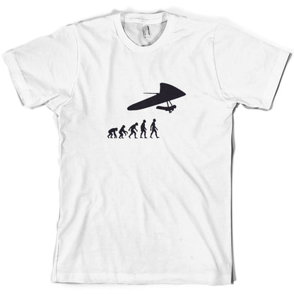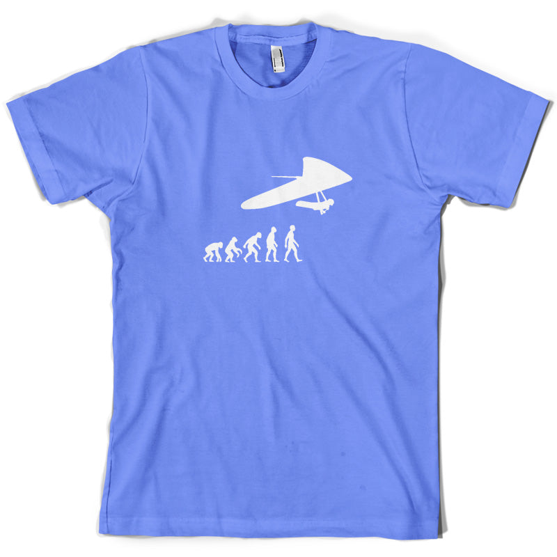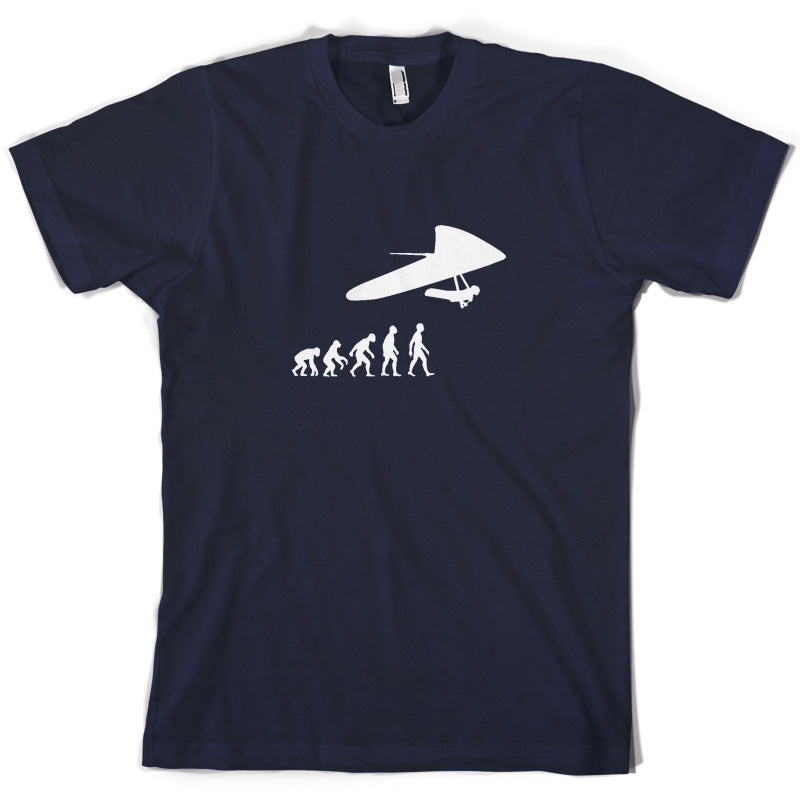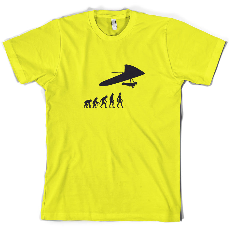 Mens Unisex T-Shirt, our men's Evolution Of Man Hang Glider t shirt is printed onto our premium 190 GSM one piece crew neck t-shirt. Available in 10 Colours and from Size Small to XXL.