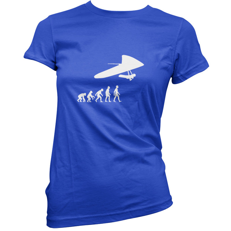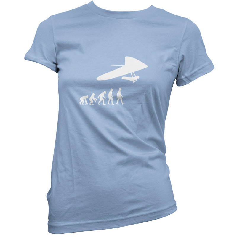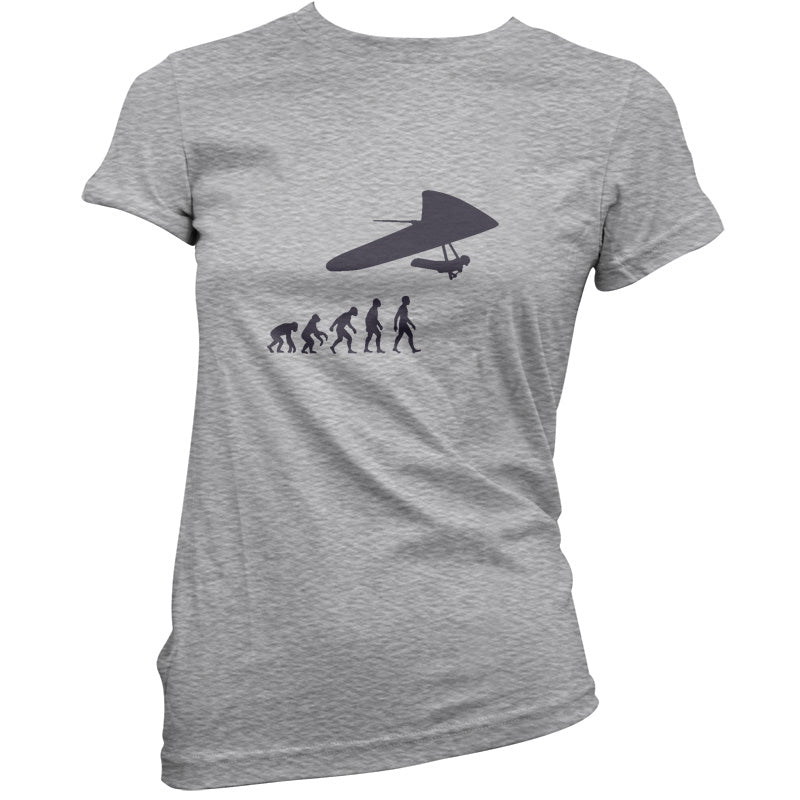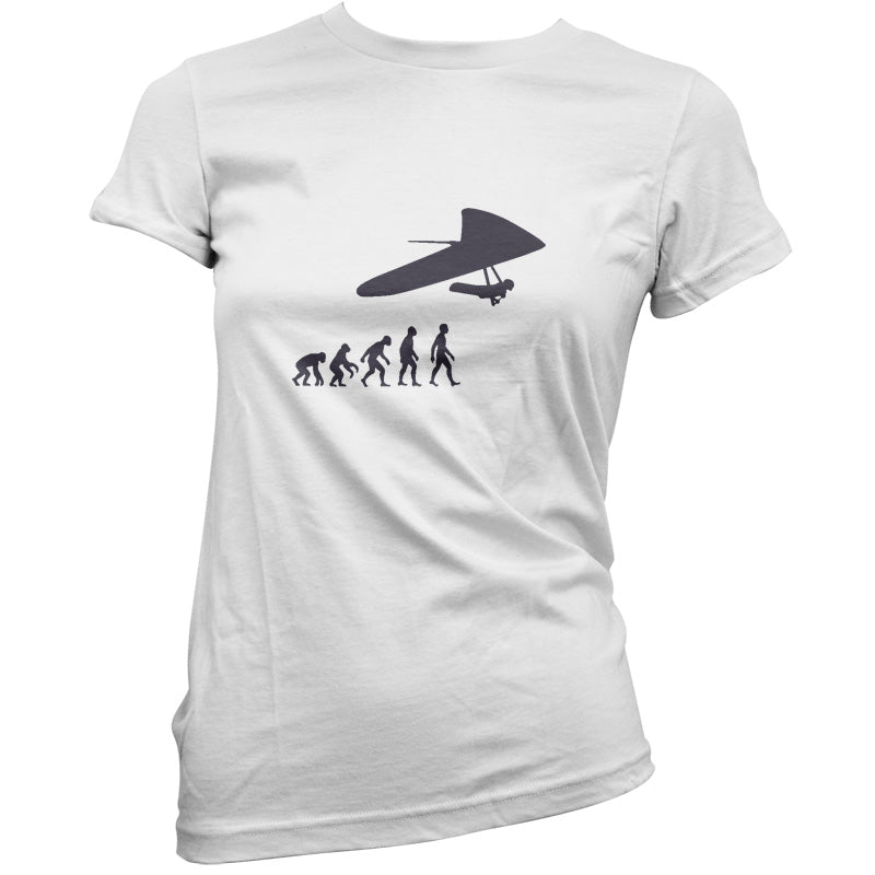 Women's Slim fit T-shirt, our ladies Evolution Of Man Hang Glider t-shirt is printed on our popular 150 GSM ring spun womens garment. Available in 11 colours and from Size Small to XXL.