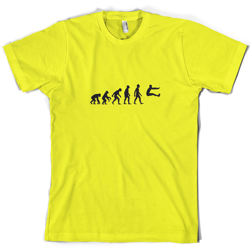 Mens Unisex T-Shirt, our men's Evolution Of Man Long Jump t shirt is printed onto our premium 190 GSM one piece crew neck t-shirt. Available in 10 Colours and from Size Small to XXL.