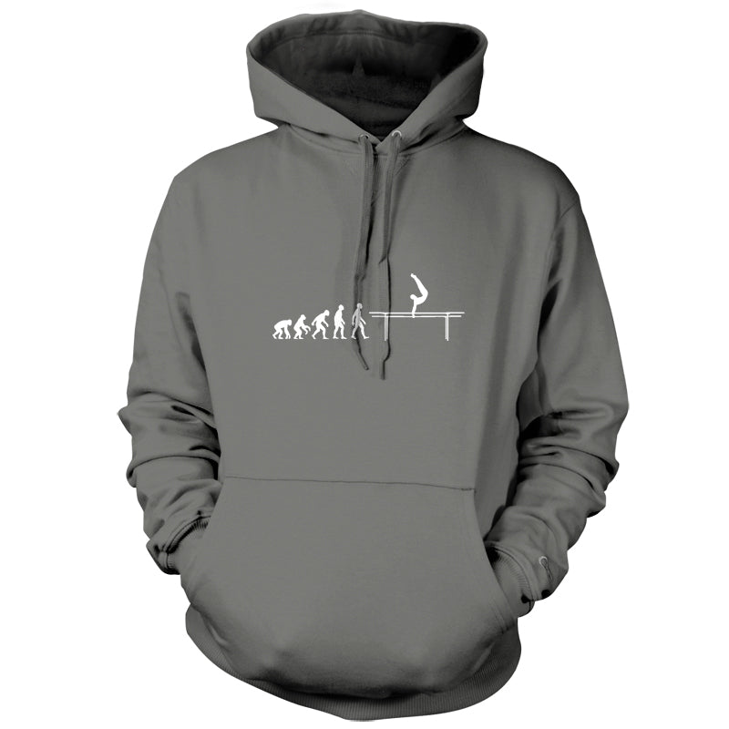 Unisex Hoodie, Our unisex style Evolution Of Man Parallel Bars Hooded top is printed on our 280 GSM kangaroo pocket garment and is Available in 9 Colours and with sizes Small to XXL.