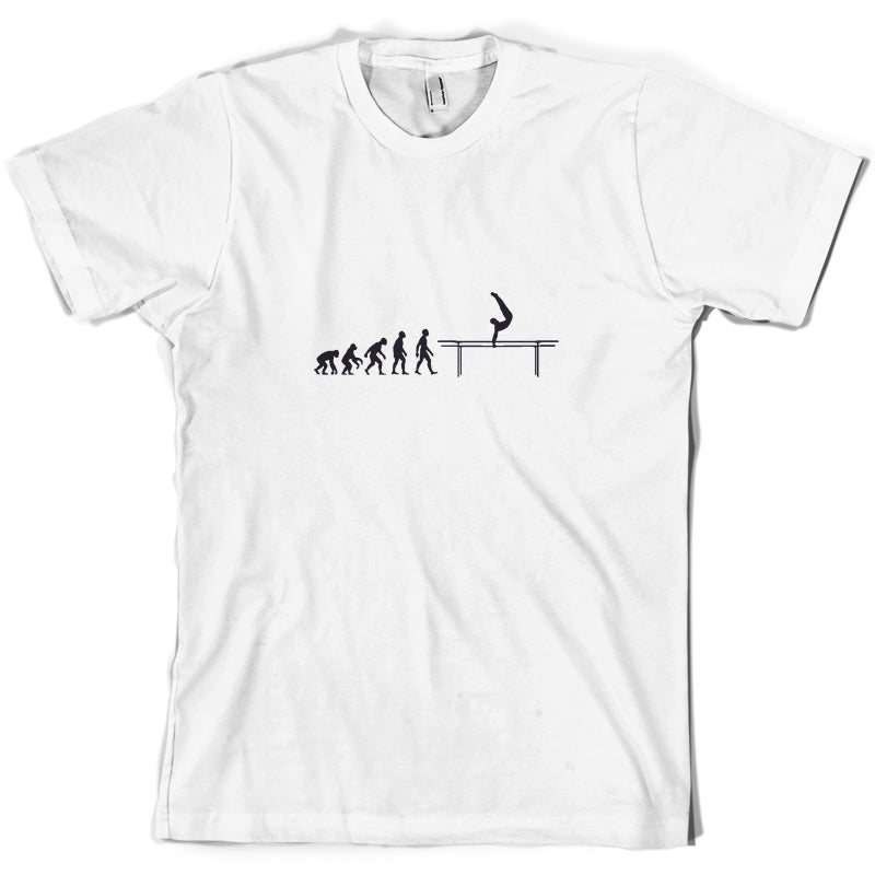 Mens Unisex T-Shirt, our men's Evolution Of Man Parallel Bars t shirt is printed onto our premium 190 GSM one piece crew neck t-shirt. Available in 10 Colours and from Size Small to XXL.