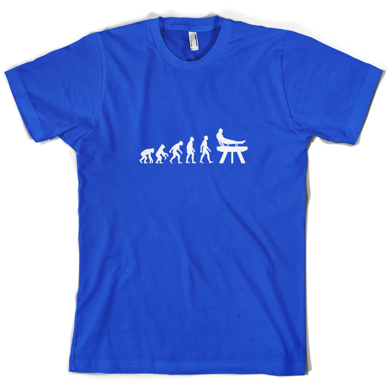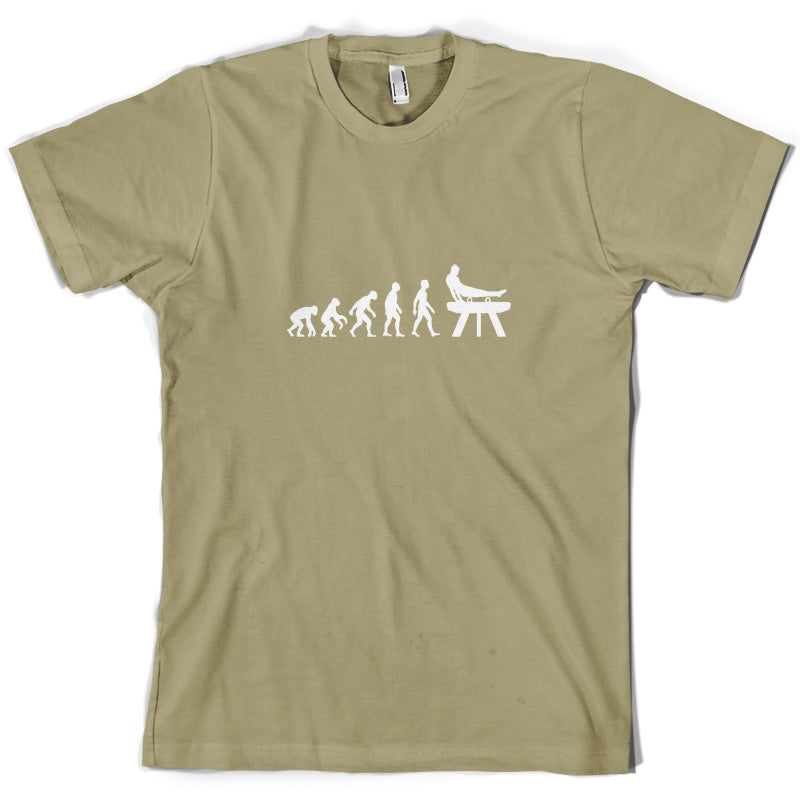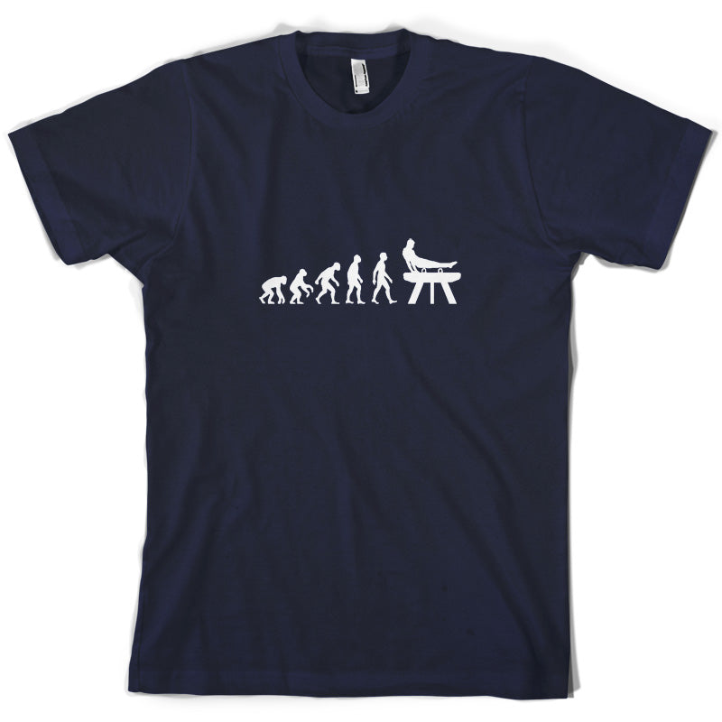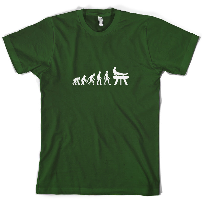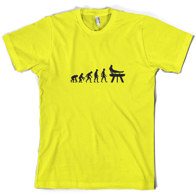 Mens Unisex T-Shirt, our men's Evolution Of Man Pommel Horse t shirt is printed onto our premium 190 GSM one piece crew neck t-shirt. Available in 10 Colours and from Size Small to XXL.