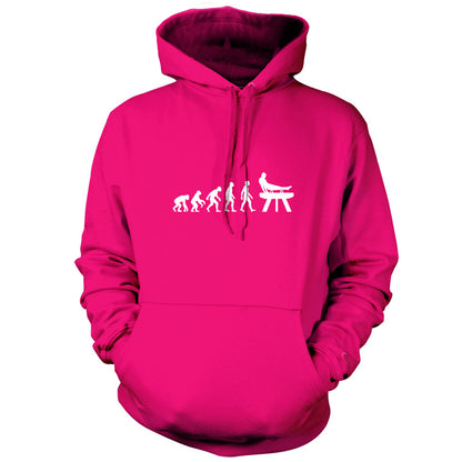 Unisex Hoodie, Our unisex style Evolution Of Man Pommel Horse Hooded top is printed on our 280 GSM kangaroo pocket garment and is Available in 9 Colours and with sizes Small to XXL.