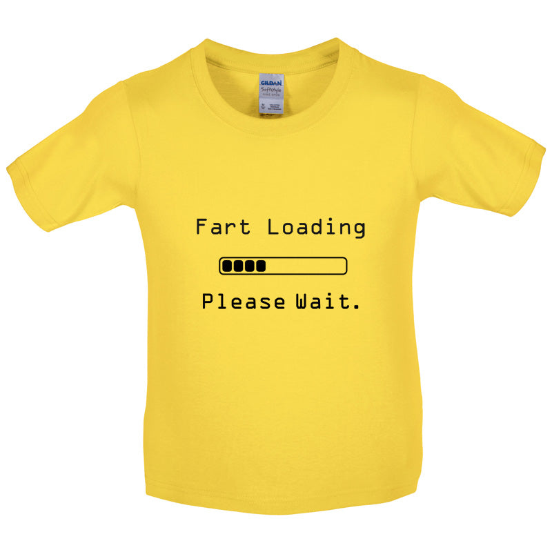 Kids T-shirt: Our Kid's Unisex style Fart Loading.. Please wait T-shirt is printed on our 150 GSM ringspun cotton garment and is available on 8 different colours.