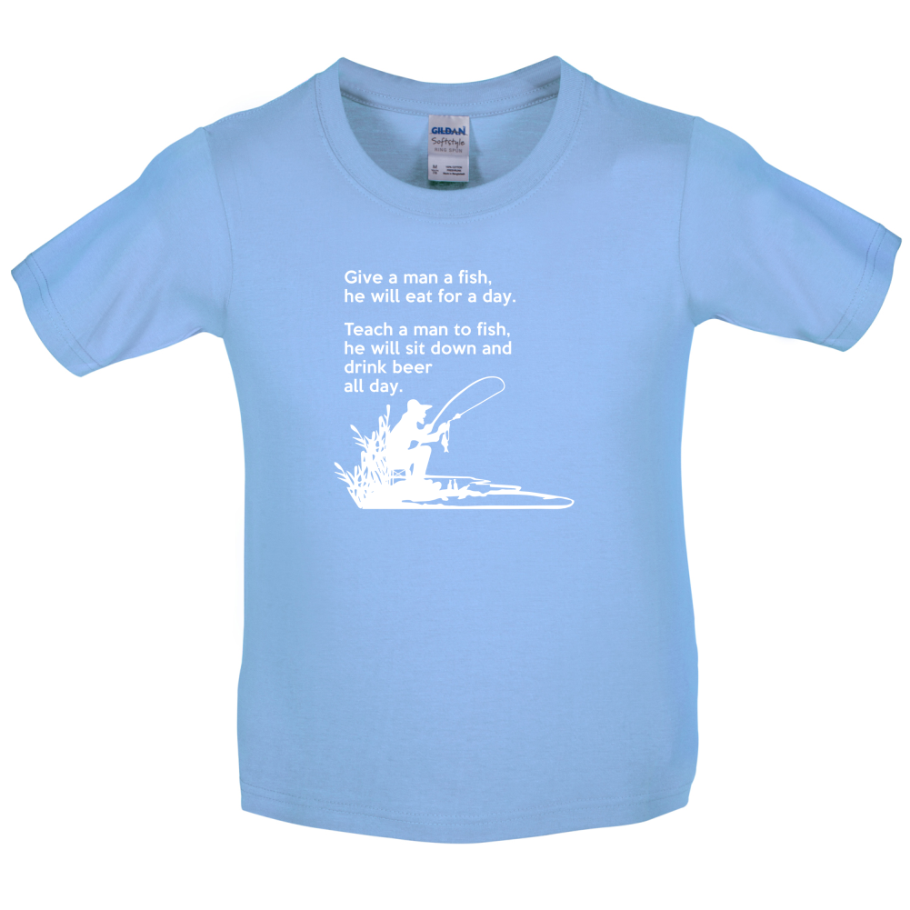 Give a man a fish, he will eat for a day. Teach a man to fish, he will sit down and drink beer all day... That's how it should be! If you're looking for a funny kid's fishing t-shirt, Dressdown.co.uk are your guys!