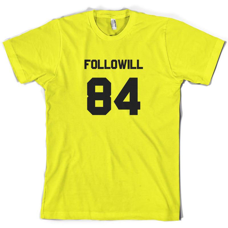 Mens Unisex T-Shirt, our men's Followill 84 t shirt is printed onto our premium 190 GSM one piece crew neck t-shirt. Available in 10 Colours and from Size Small to XXL.
