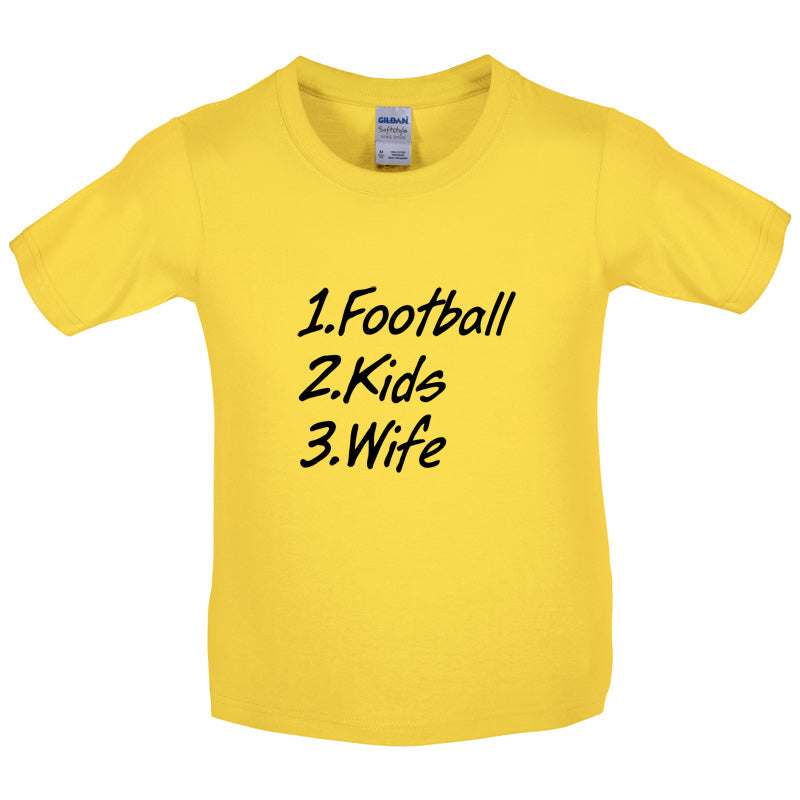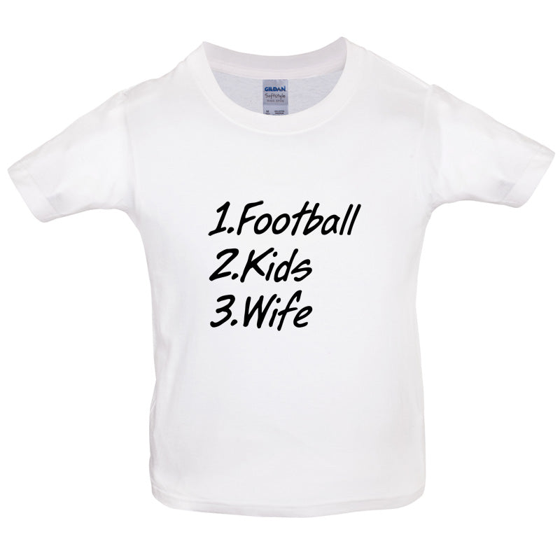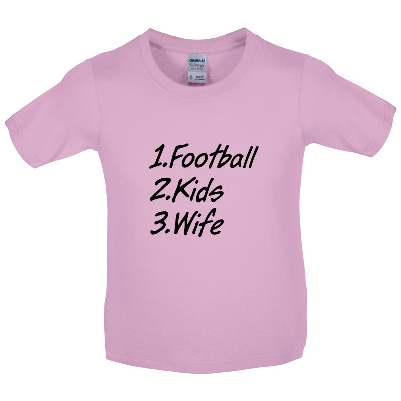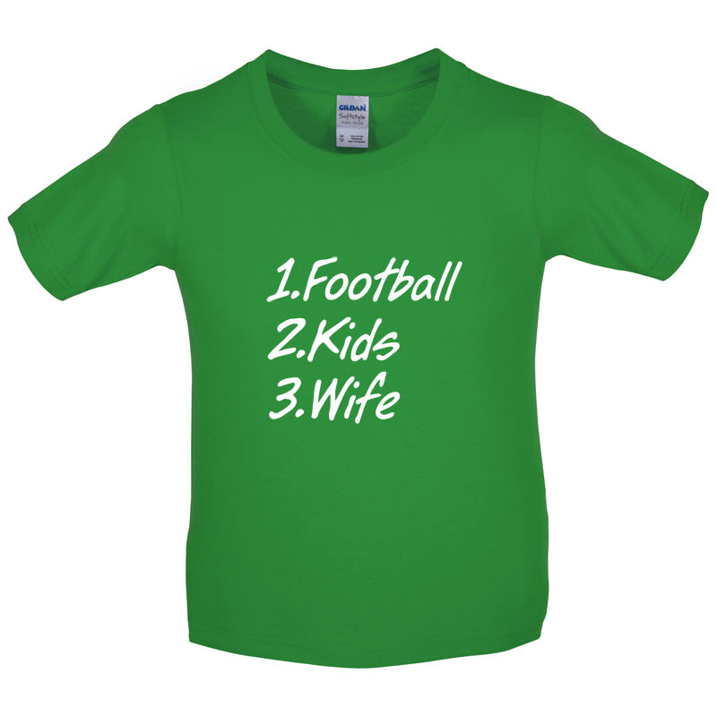 Kids T-shirt: Our Kid's Unisex style Football Kids Wife T-shirt is printed on our 150 GSM ringspun cotton garment and is available on 8 different colours.