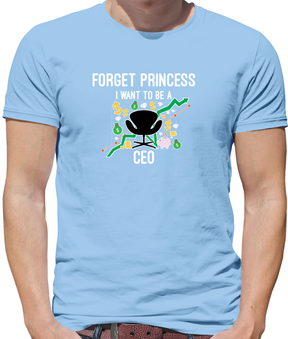 Mens Unisex T-Shirt, our men's Forget Princess CEO t shirt is printed onto our premium 190 GSM one piece crew neck t-shirt. Available in 10 Colours and from Size Small to XXL.
