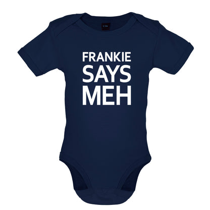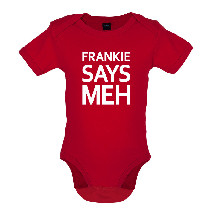Babygrow/Bodysuit: Our Baby unisex style Frankie Says Meh Babygrow is printed on our 200 GSM short sleeve bodysuit and is available in a choice of 6 different Colours.
