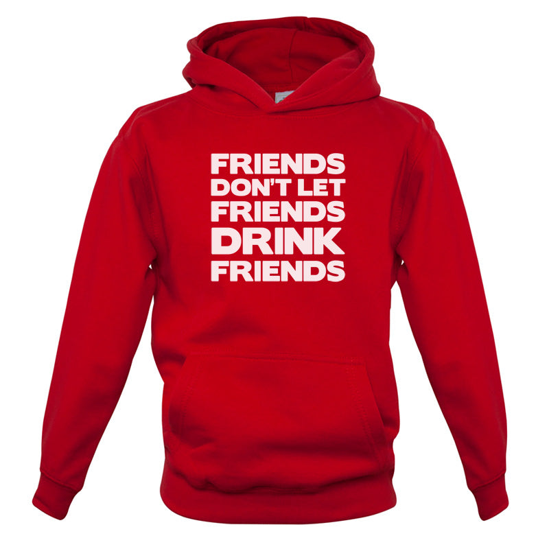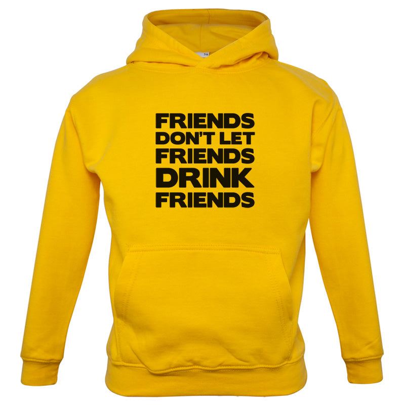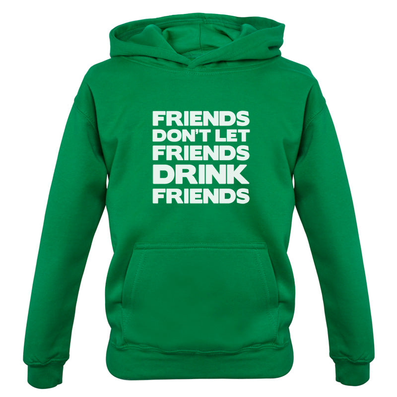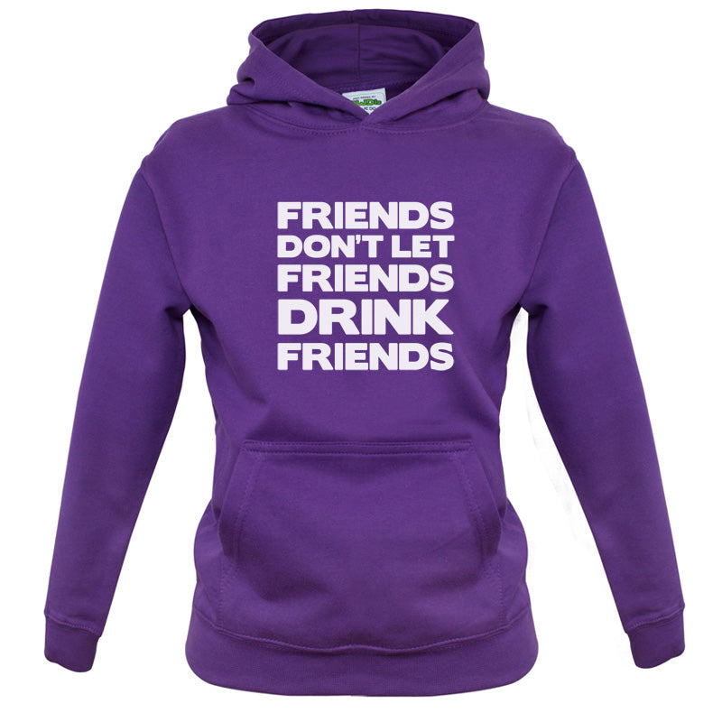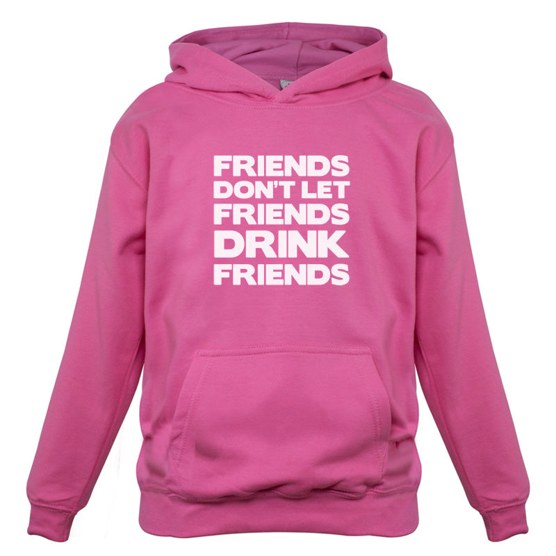Kids Hoodie: Our kids unisex style Friends Dont Let Friends Drink Friends Hoodie is printed on our 300 GSM kangaroo pocket hooded top and is available on 7 different Colours.