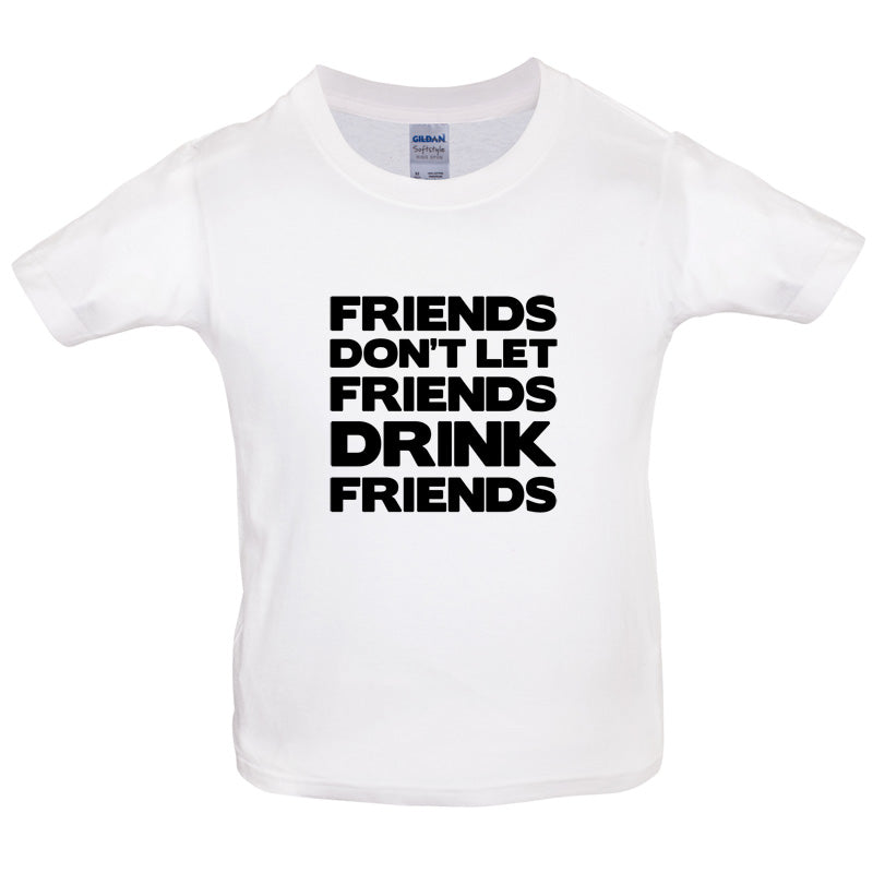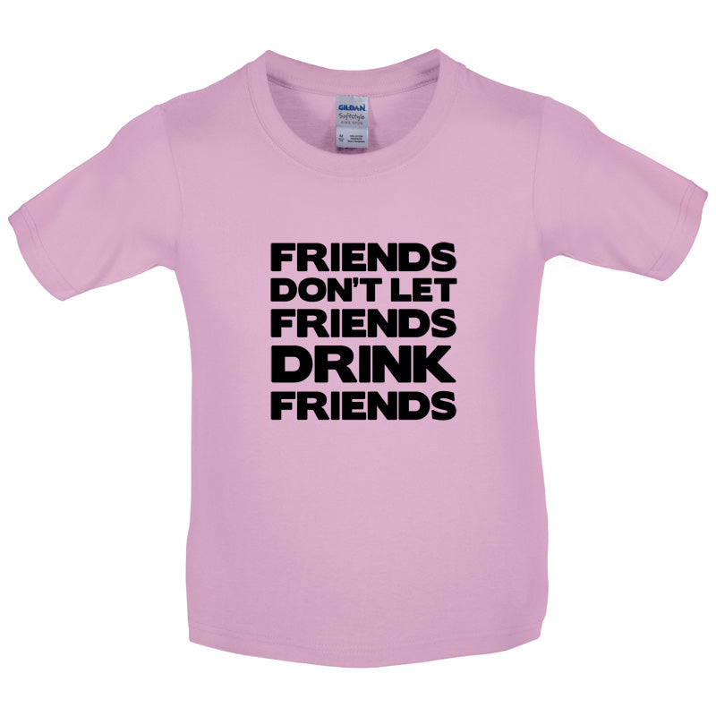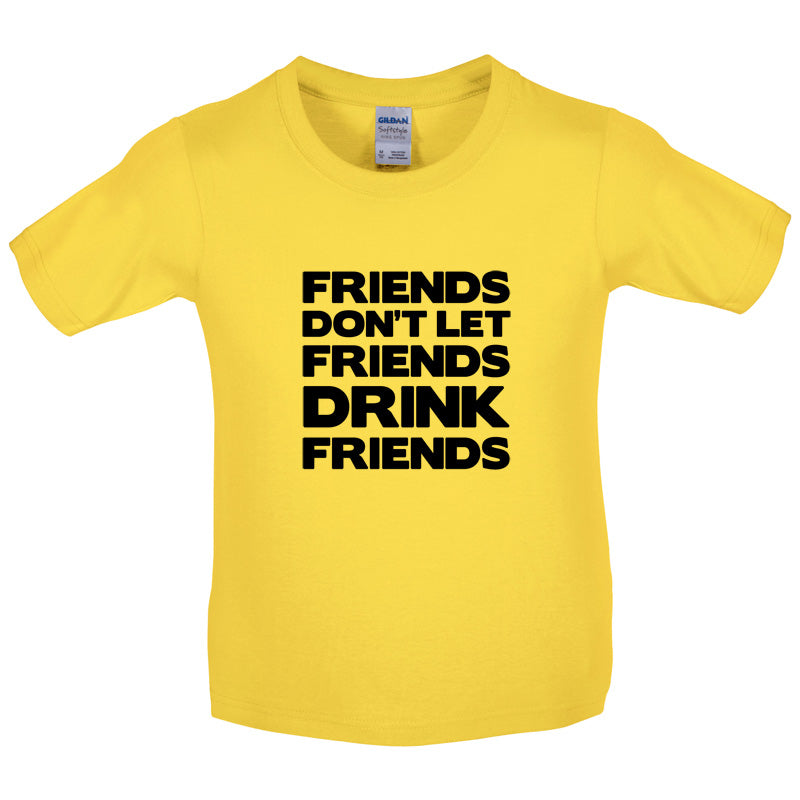 Kids T-shirt: Our Kid's Unisex style Friends Dont Let Friends Drink Friends T-shirt is printed on our 150 GSM ringspun cotton garment and is available on 8 different colours.