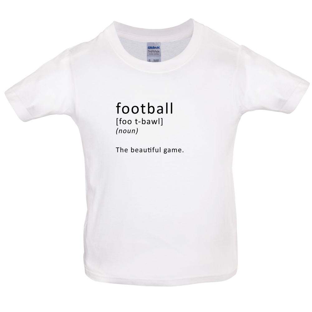 Kids T-shirt: Our Kid's Unisex style Funny Definition Football T-shirt is printed on our 150 GSM ringspun cotton garment and is available on 8 different colours.