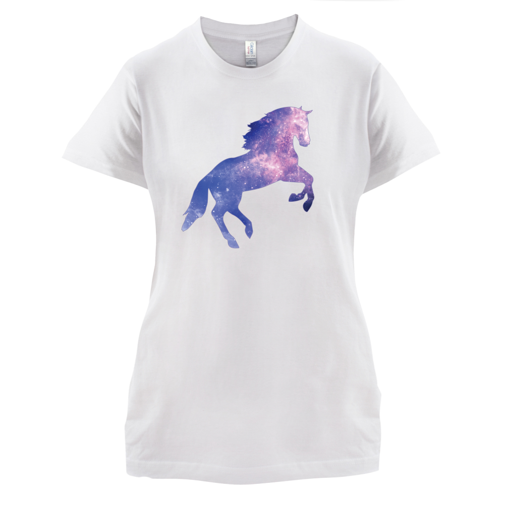 Women's Slim fit T-shirt, our ladies Galaxy Horse t-shirt is printed on our popular 150 GSM ring spun womens garment. Available in 11 colours and from Size Small to XXL.