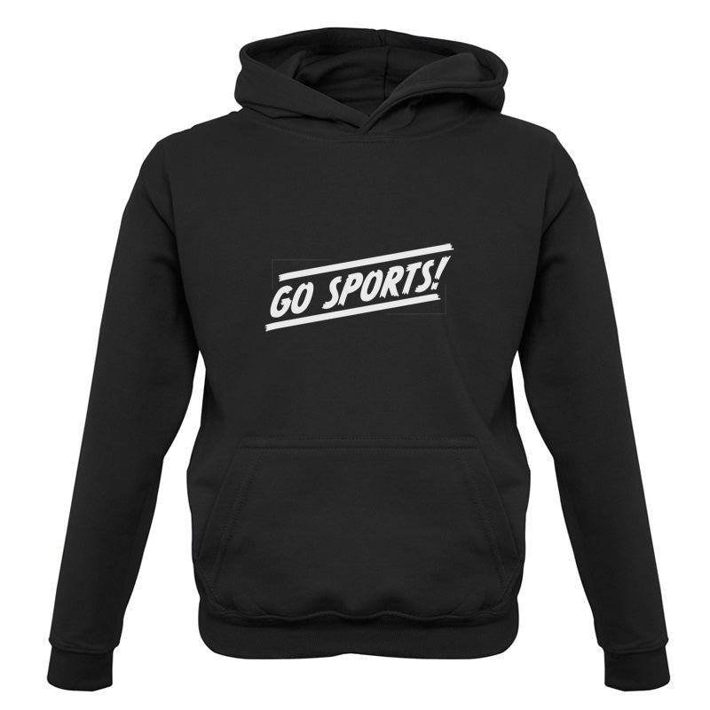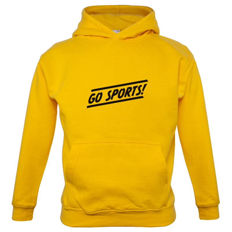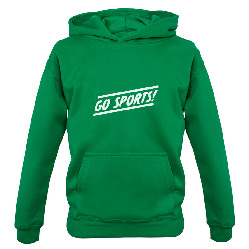 Kids Hoodie: Our kids unisex style Go Sports Hoodie is printed on our 300 GSM kangaroo pocket hooded top and is available on 7 different Colours.