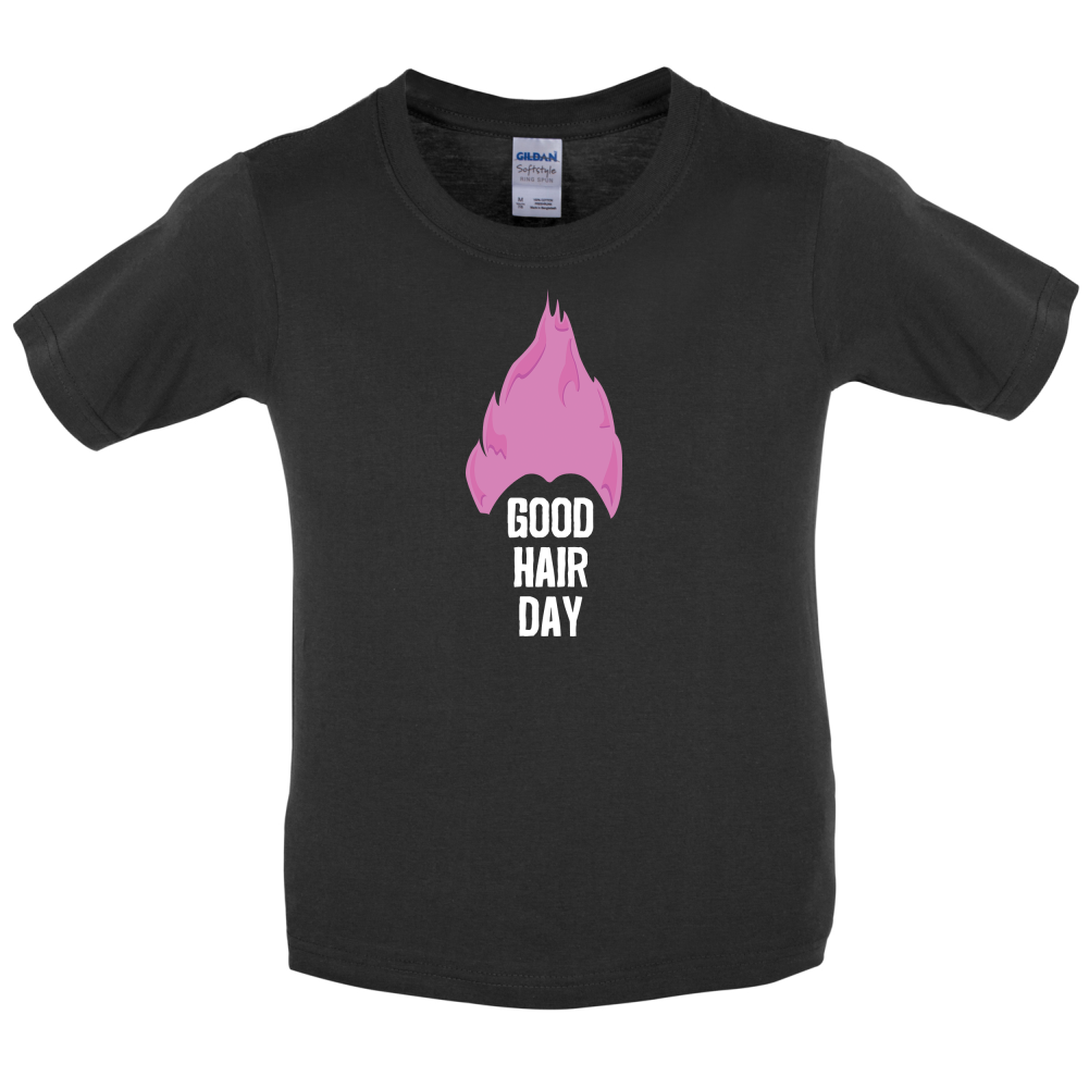 Kids T-shirt: Our Kid's Unisex style Good Hair Day T-shirt is printed on our 150 GSM ringspun cotton garment and is available on 8 different colours.