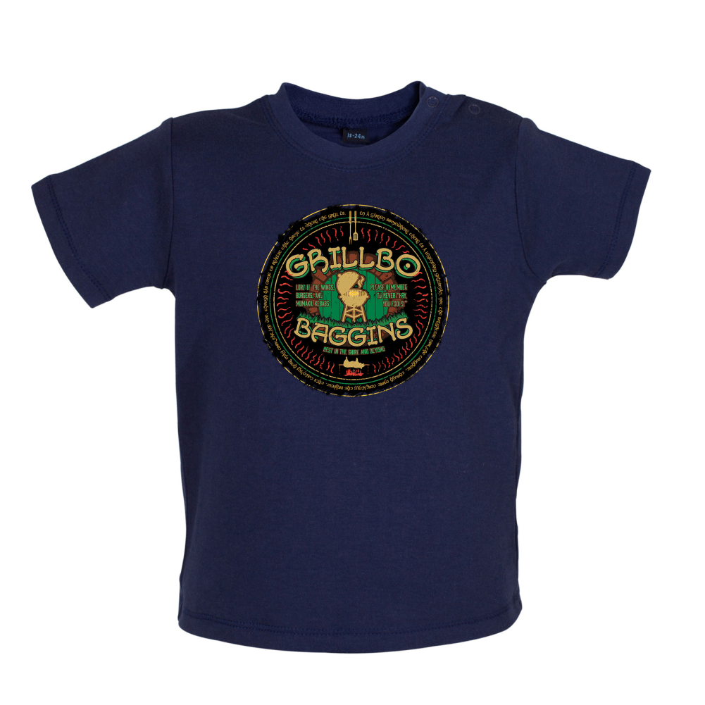 Baby/Toddler T-shirt: Our Baby Unisex style Grillbo Baggins T-shirt is printed on our high quality 200 gsm ringspun cotton garment which features shoulder poppers to ease getting your little one dressed. Our Baby T-shirts are available in a choice of Eight colours.