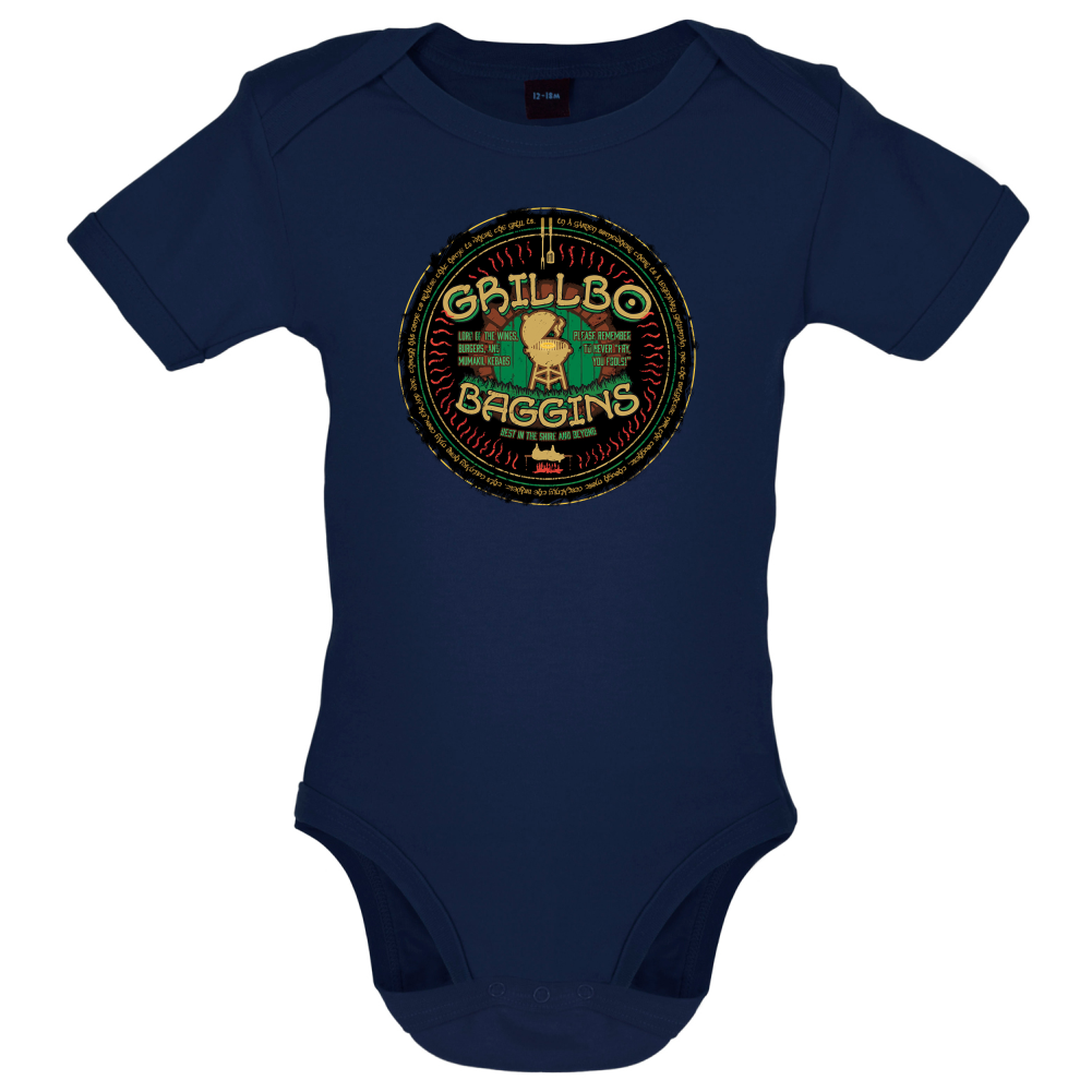 Babygrow/Bodysuit: Our Baby unisex style Grillbo Baggins Babygrow is printed on our 200 GSM short sleeve bodysuit and is available in a choice of 6 different Colours.