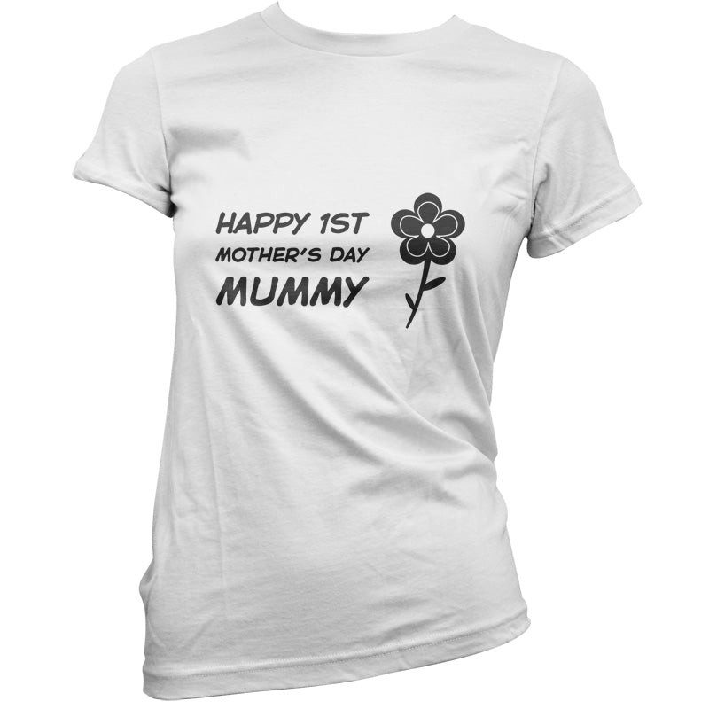 Women's Slim fit T-shirt, our ladies Happy 1st Mothers Day Mummy - Flower t-shirt is printed on our popular 150 GSM ring spun womens garment. Available in 11 colours and from Size Small to XXL.
