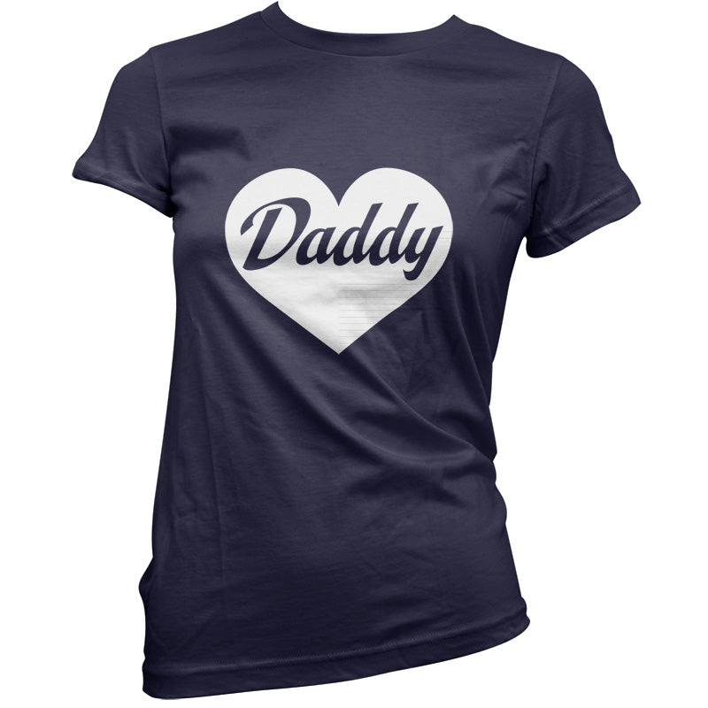 Women's Slim fit T-shirt, our ladies Heart Daddy t-shirt is printed on our popular 150 GSM ring spun womens garment. Available in 11 colours and from Size Small to XXL.
