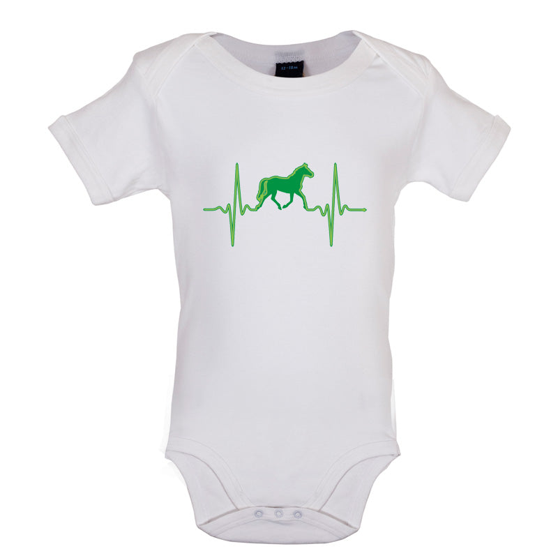 Babygrow/Bodysuit: Our Baby unisex style Heartbeat Horse Babygrow is printed on our 200 GSM short sleeve bodysuit and is available in a choice of 6 different Colours.