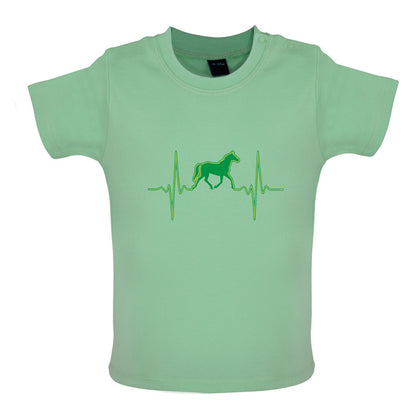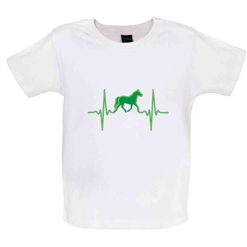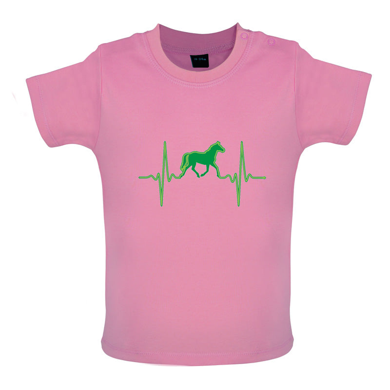 Baby/Toddler T-shirt: Our Baby Unisex style Heartbeat Horse T-shirt is printed on our high quality 200 gsm ringspun cotton garment which features shoulder poppers to ease getting your little one dressed. Our Baby T-shirts are available in a choice of Eight colours.