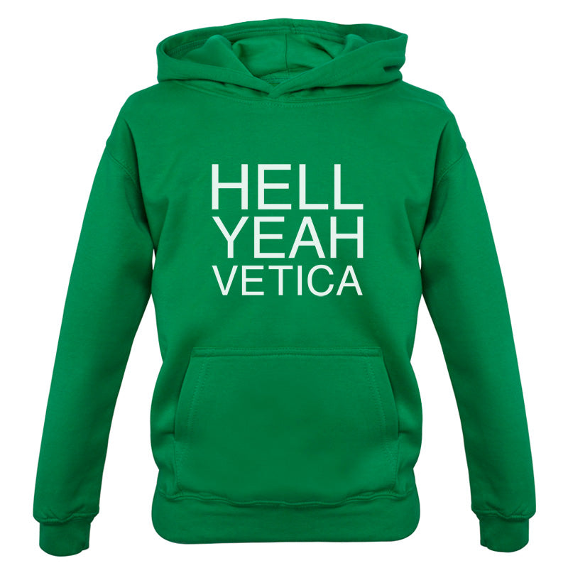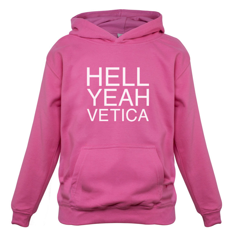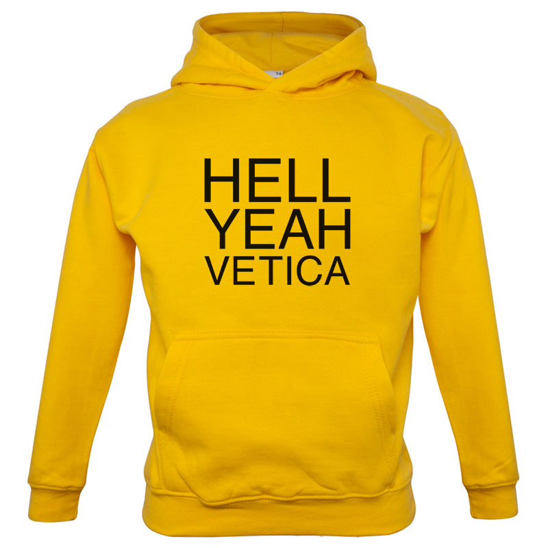 Kids Hoodie: Our kids unisex style Hell Yeah Vetica Hoodie is printed on our 300 GSM kangaroo pocket hooded top and is available on 7 different Colours.
