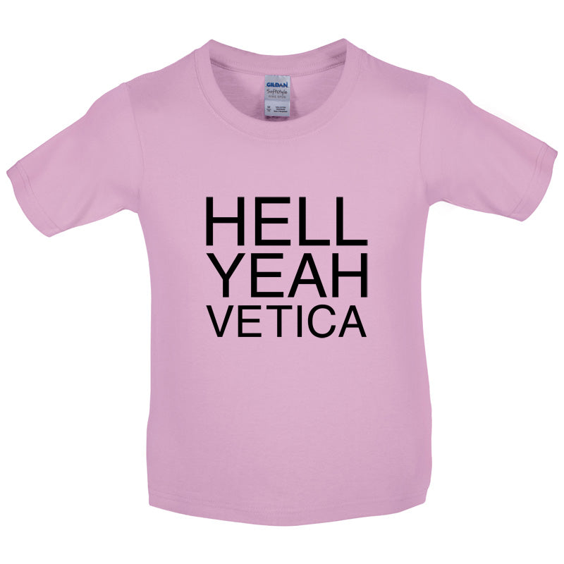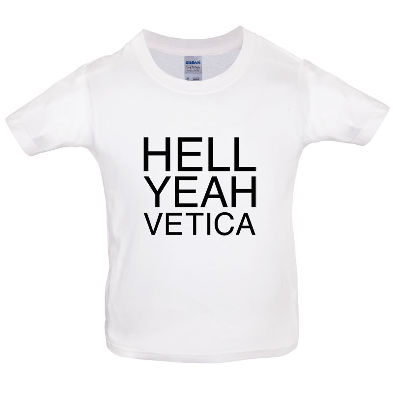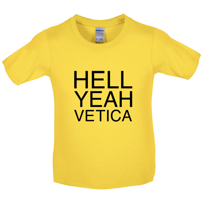 Kids T-shirt: Our Kid's Unisex style Hell Yeah Vetica T-shirt is printed on our 150 GSM ringspun cotton garment and is available on 8 different colours.