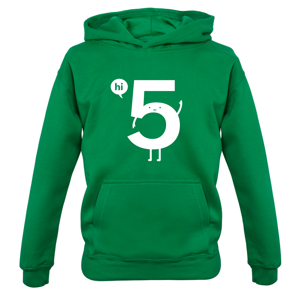 Kids Hoodie: Our kids unisex style Hi 5 Hoodie is printed on our 300 GSM kangaroo pocket hooded top and is available on 7 different Colours.