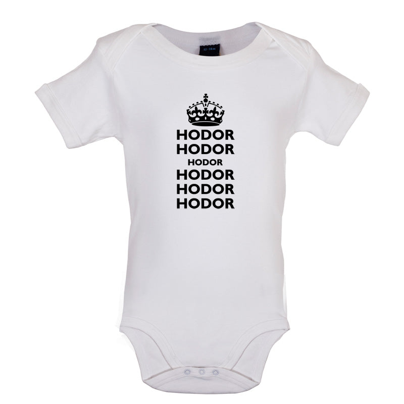 Babygrow/Bodysuit: Our Baby unisex style Hodor Hodor Hodor Babygrow is printed on our 200 GSM short sleeve bodysuit and is available in a choice of 6 different Colours.