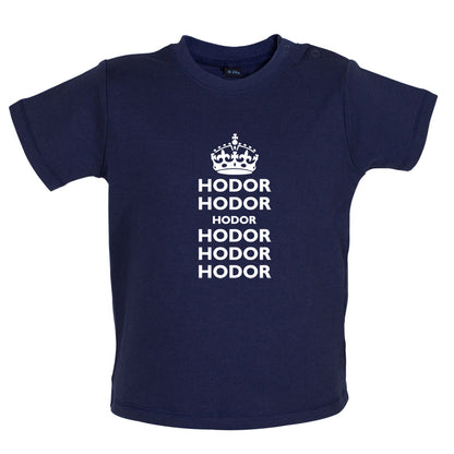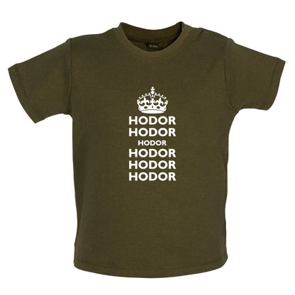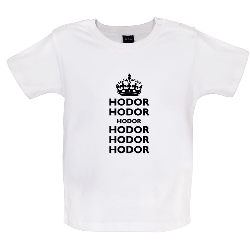Baby/Toddler T-shirt: Our Baby Unisex style Hodor Hodor Hodor T-shirt is printed on our high quality 200 gsm ringspun cotton garment which features shoulder poppers to ease getting your little one dressed. Our Baby T-shirts are available in a choice of Eight colours.