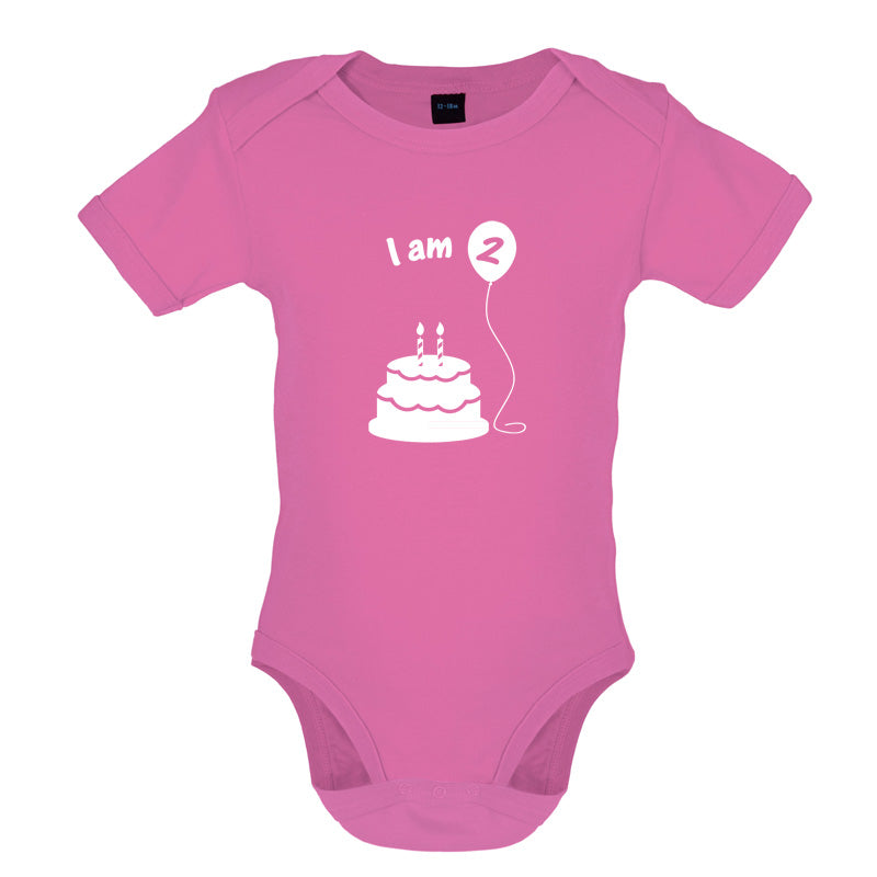 Babygrow/Bodysuit: Our Baby unisex style I Am 2 (Birthday) Babygrow is printed on our 200 GSM short sleeve bodysuit and is available in a choice of 6 different Colours.