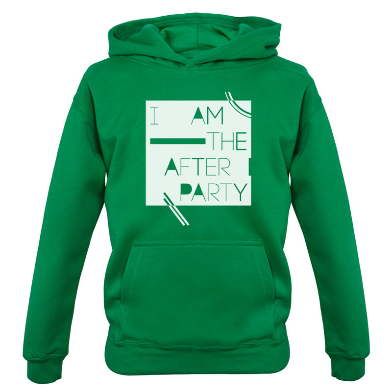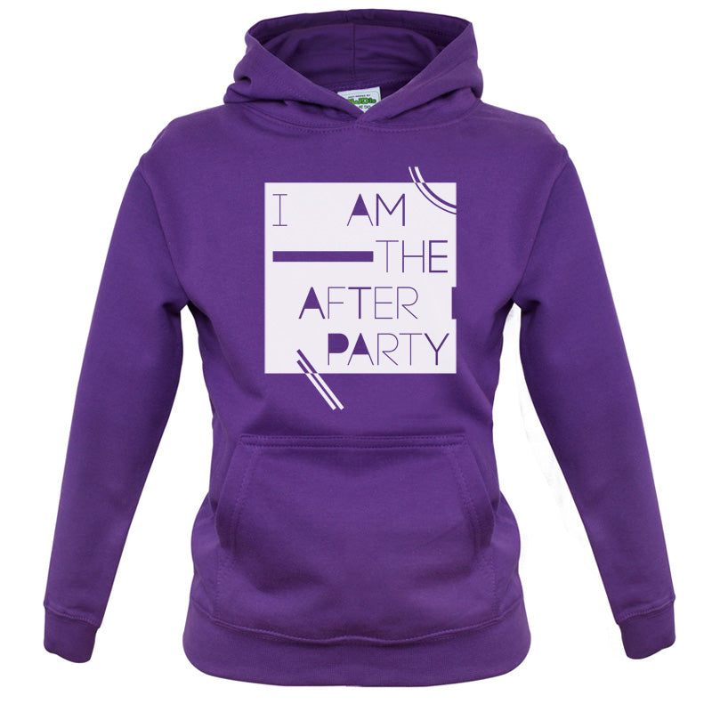 Kids Hoodie: Our kids unisex style I Am The After Party Hoodie is printed on our 300 GSM kangaroo pocket hooded top and is available on 7 different Colours.