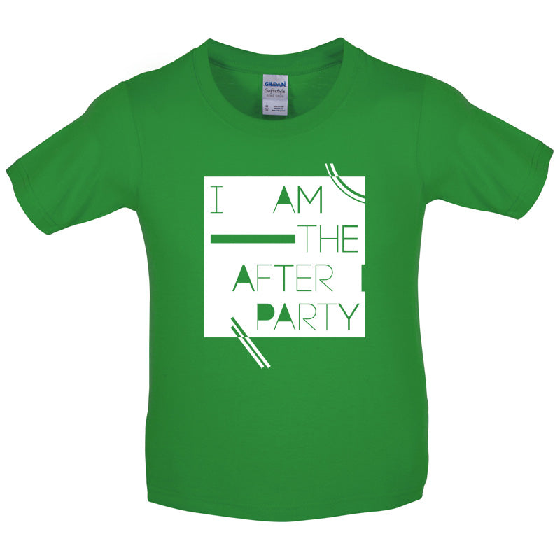 Kids T-shirt: Our Kid's Unisex style I Am The After Party T-shirt is printed on our 150 GSM ringspun cotton garment and is available on 8 different colours.