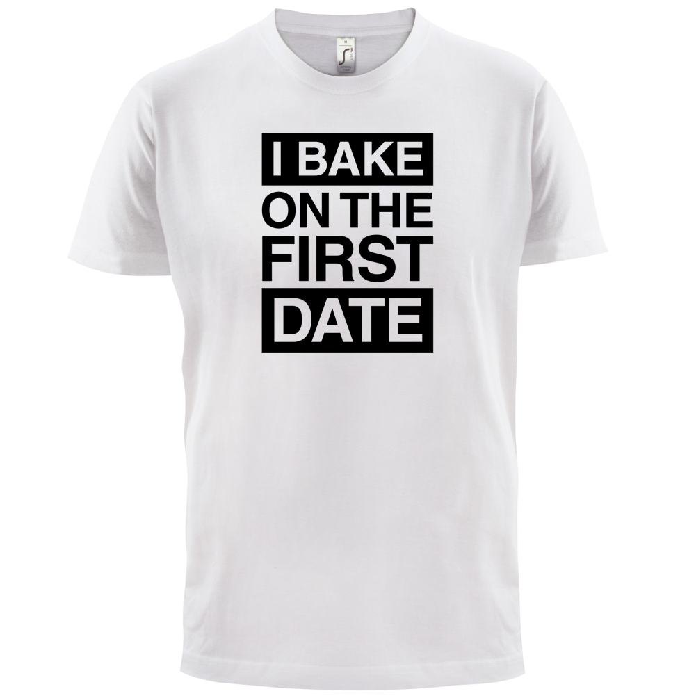 Mens Unisex T-Shirt, our men's I Bake on the First Date t shirt is printed onto our premium 190 GSM one piece crew neck t-shirt. Available in 10 Colours and from Size Small to XXL.