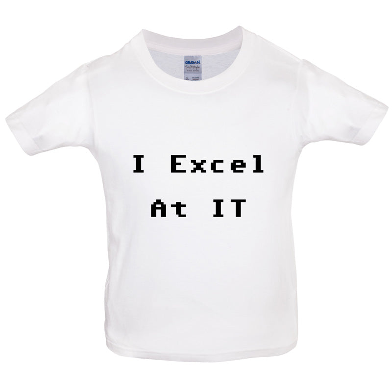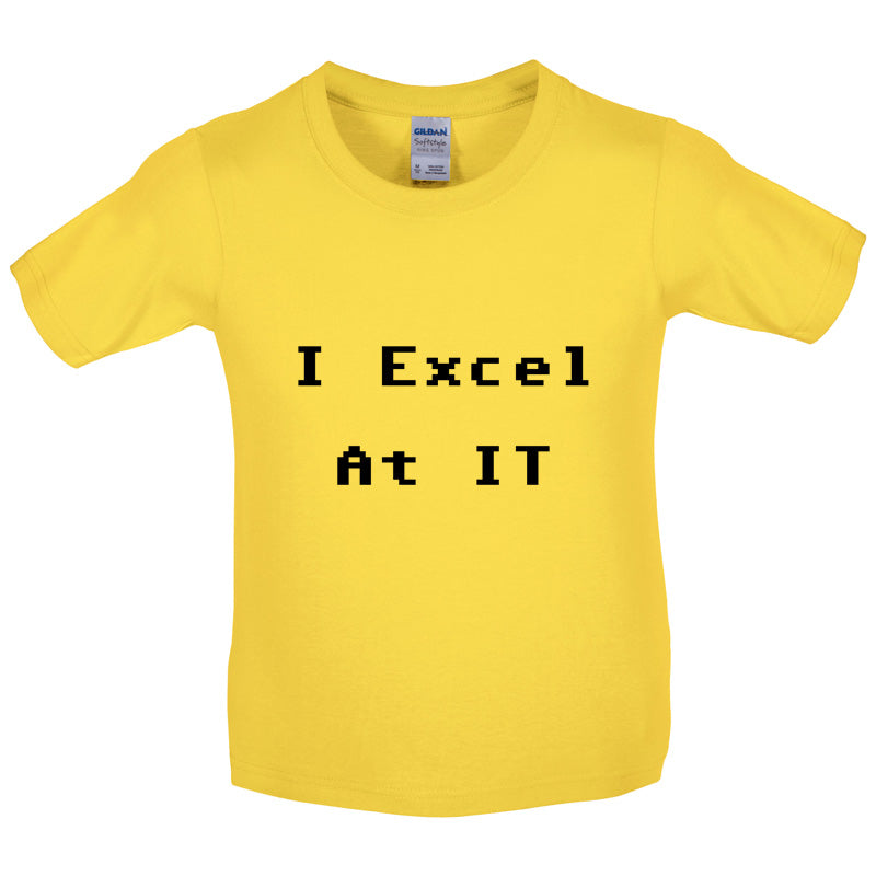 Kids T-shirt: Our Kid's Unisex style I Excel at IT T-shirt is printed on our 150 GSM ringspun cotton garment and is available on 8 different colours.