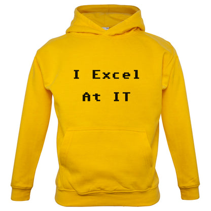 Kids Hoodie: Our kids unisex style I Excel at IT Hoodie is printed on our 300 GSM kangaroo pocket hooded top and is available on 7 different Colours.