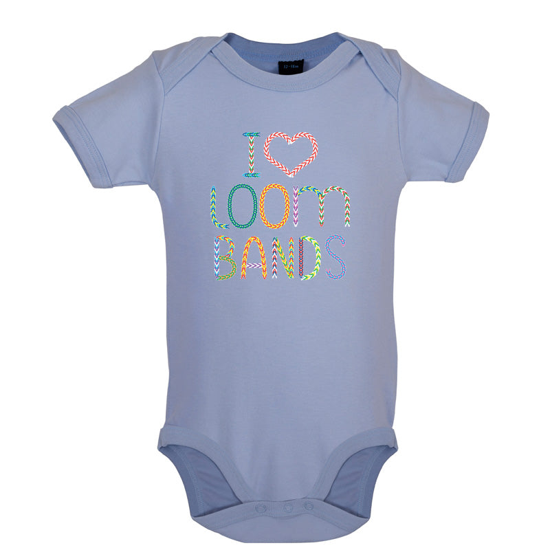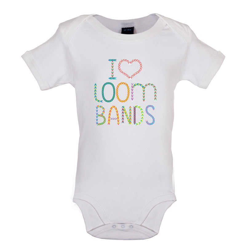 This I Love Loom Bands baby design is available in a choice of garments, use the menu on the right of this page to select your choice of the following: