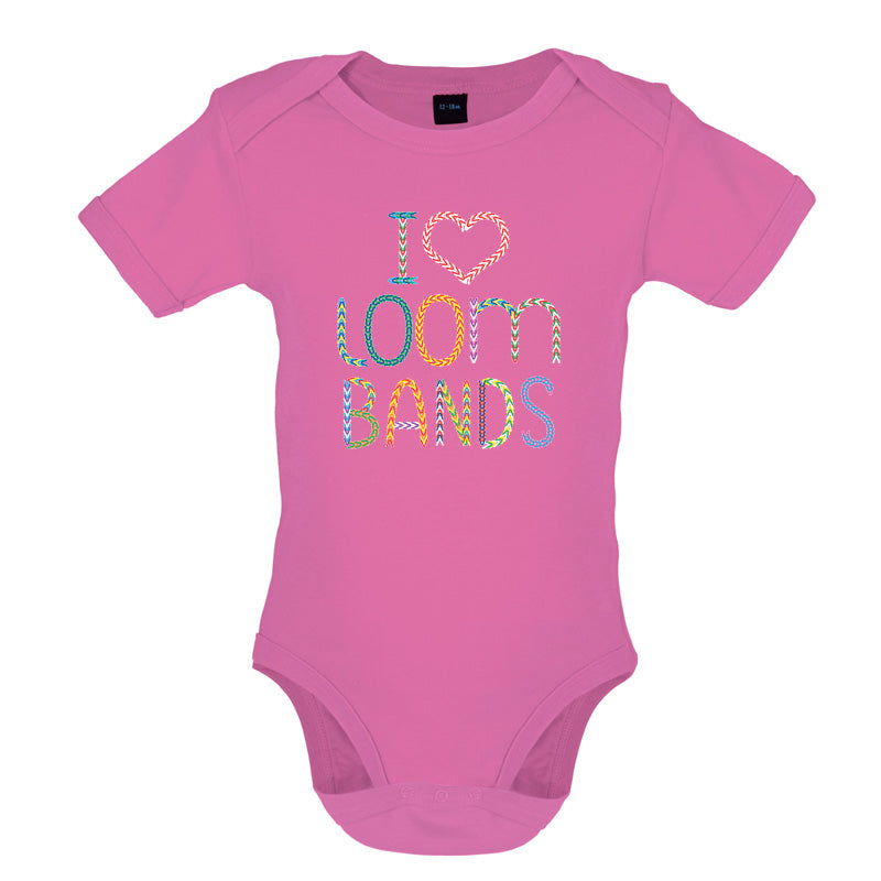 Babygrow/Bodysuit: Our Baby unisex style I Love Loom Bands Babygrow is printed on our 200 GSM short sleeve bodysuit and is available in a choice of 6 different Colours.