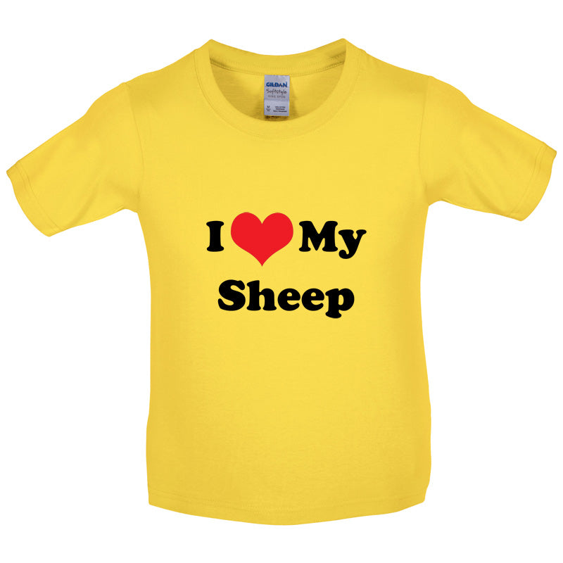 Kids T-shirt: Our Kid's Unisex style I Love My Sheep T-shirt is printed on our 150 GSM ringspun cotton garment and is available on 8 different colours.