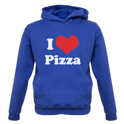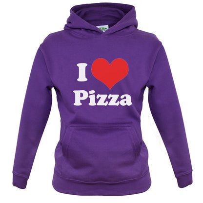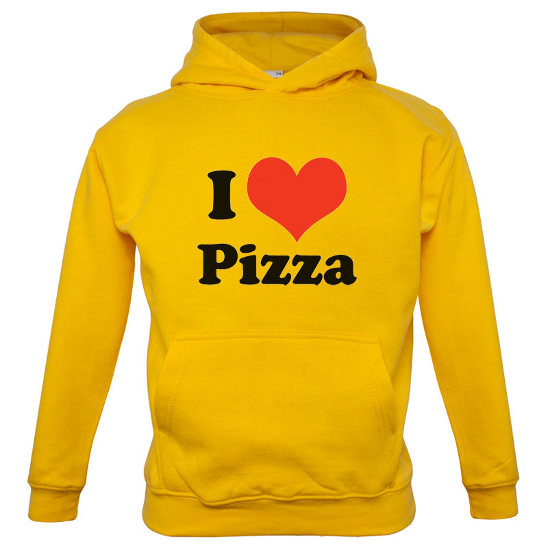 Kids Hoodie: Our kids unisex style I Love Pizza Hoodie is printed on our 300 GSM kangaroo pocket hooded top and is available on 7 different Colours.