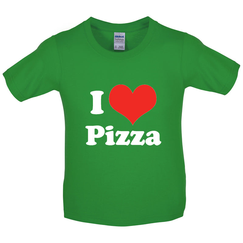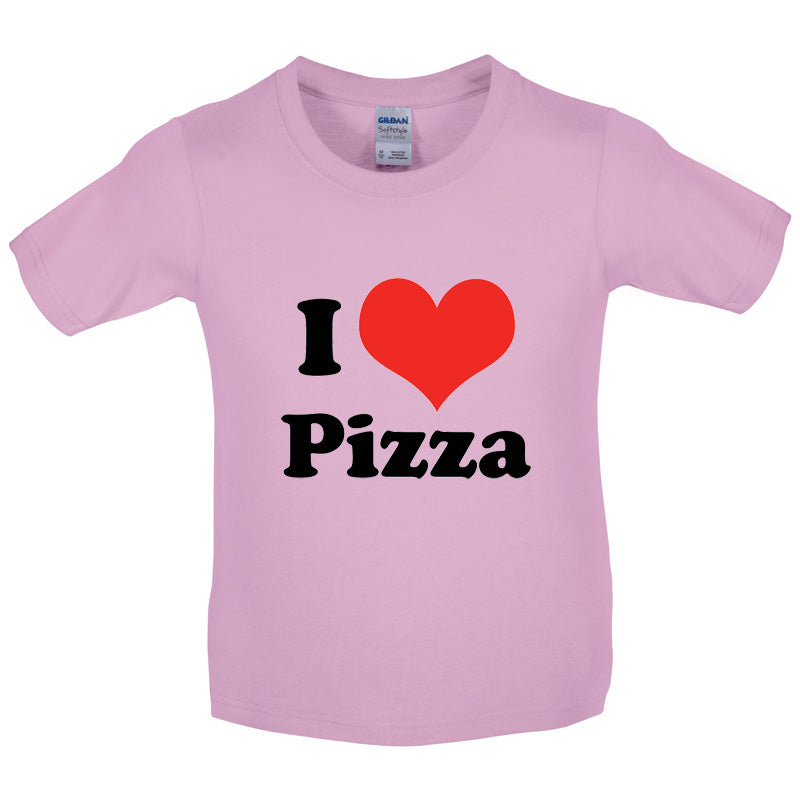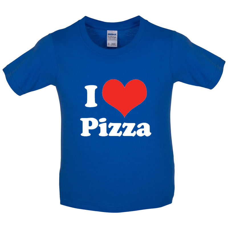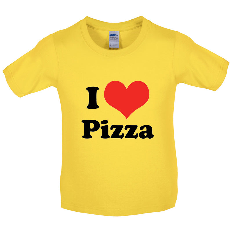 Kids T-shirt: Our Kid's Unisex style I Love Pizza T-shirt is printed on our 150 GSM ringspun cotton garment and is available on 8 different colours.