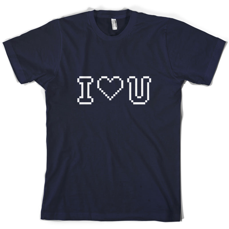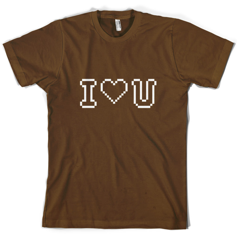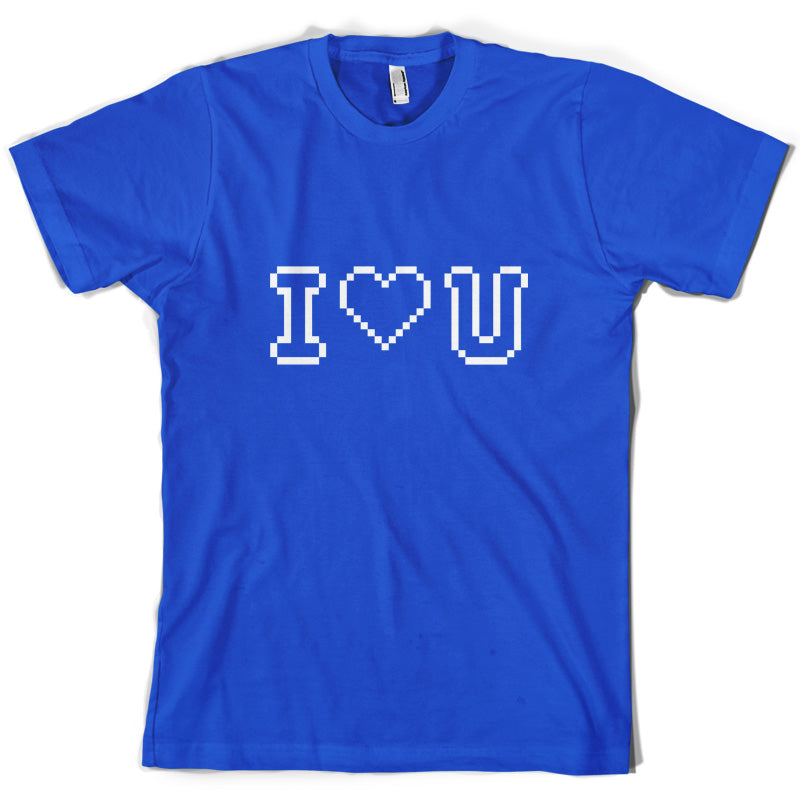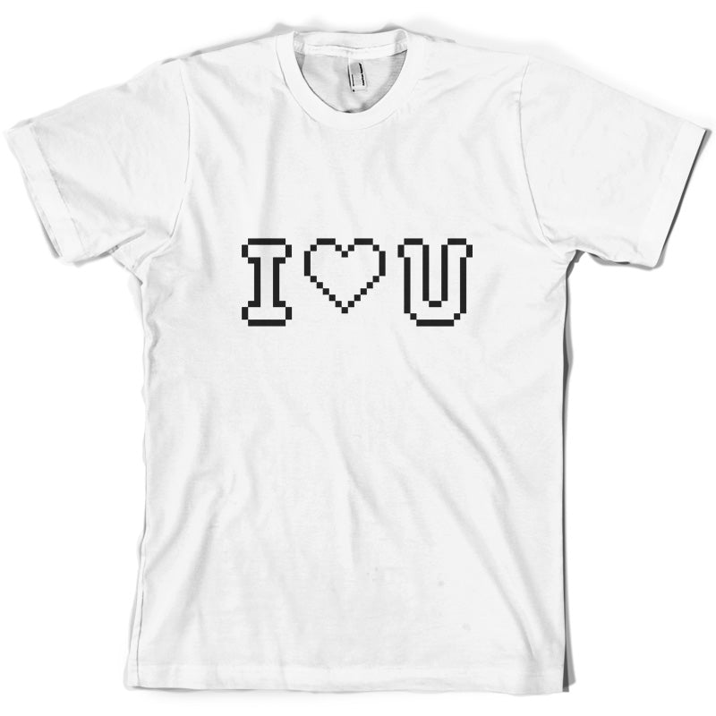 Mens Unisex T-Shirt, our men's I Love U (Pixels) t shirt is printed onto our premium 190 GSM one piece crew neck t-shirt. Available in 10 Colours and from Size Small to XXL.