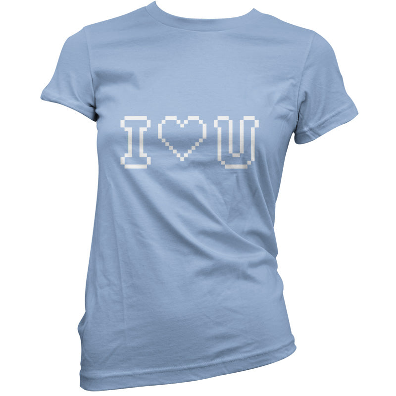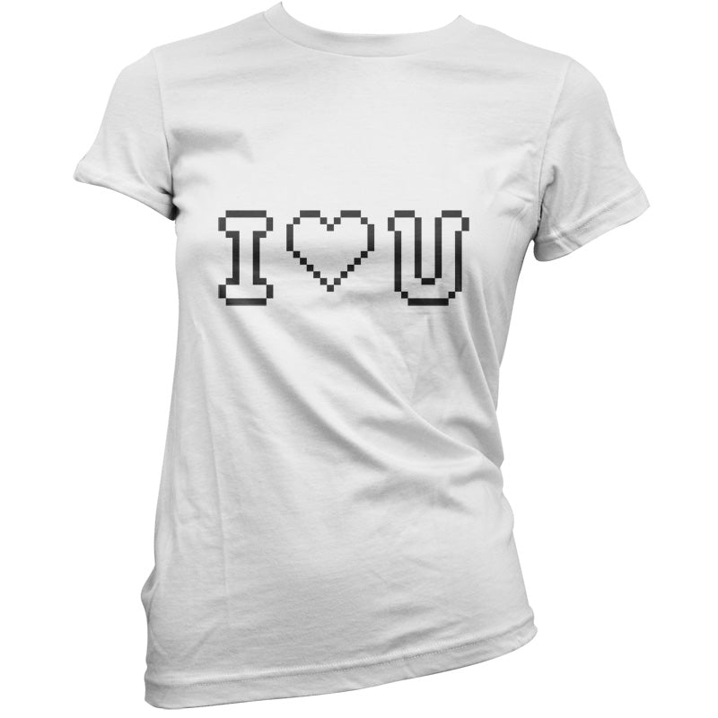 Women's Slim fit T-shirt, our ladies I Love U (Pixels) t-shirt is printed on our popular 150 GSM ring spun womens garment. Available in 11 colours and from Size Small to XXL.