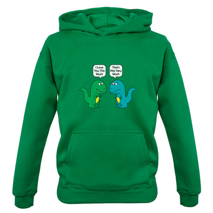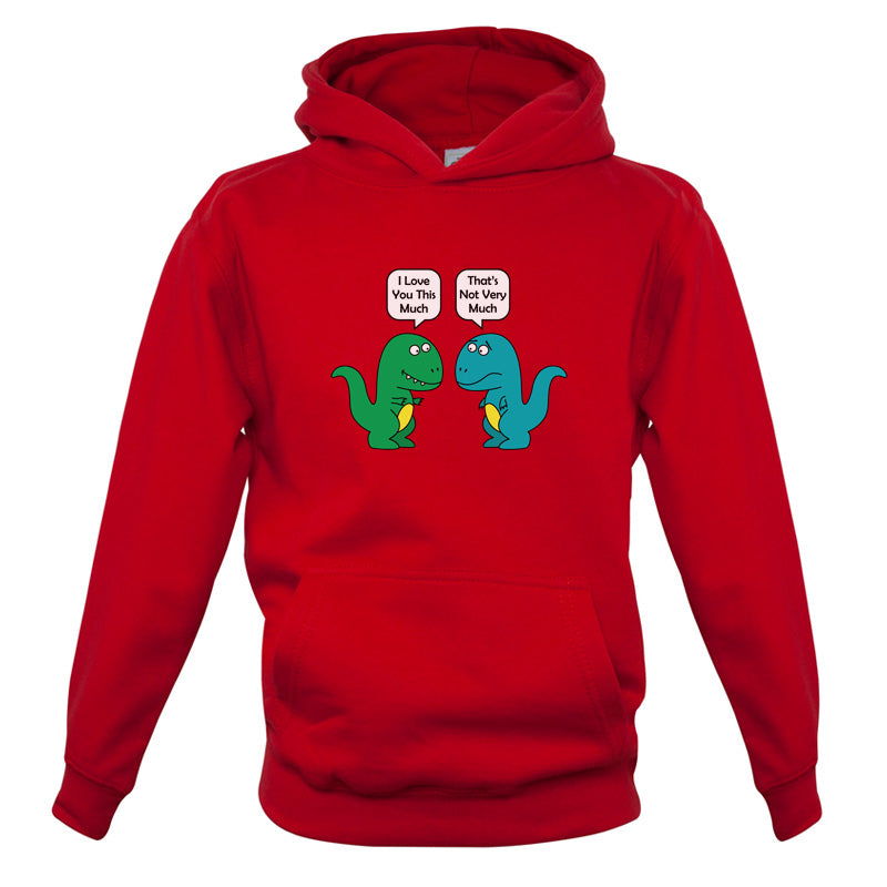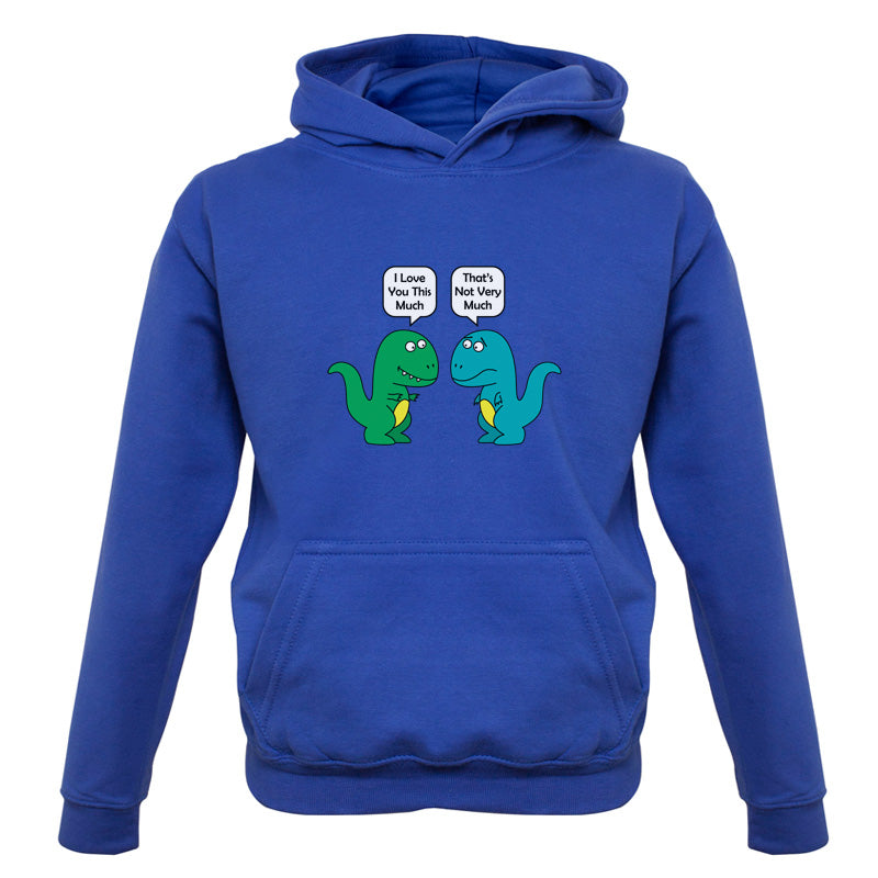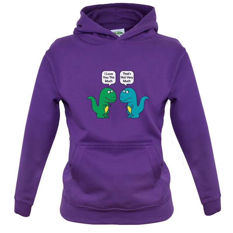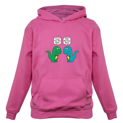Kids Hoodie: Our kids unisex style I Love You This Much Dinosaurs Hoodie is printed on our 300 GSM kangaroo pocket hooded top and is available on 7 different Colours.