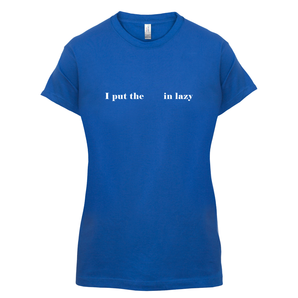 Women's Slim fit T-shirt, our ladies The Laziest t-shirt is printed on our popular 150 GSM ring spun womens garment. Available in 11 colours and from Size Small to XXL.