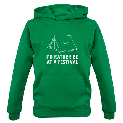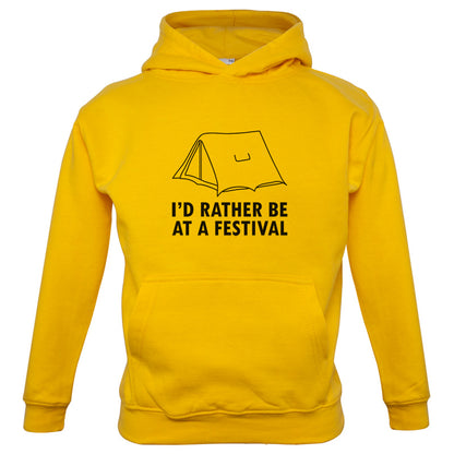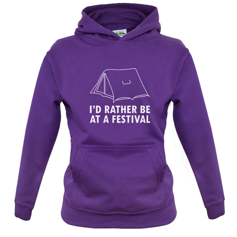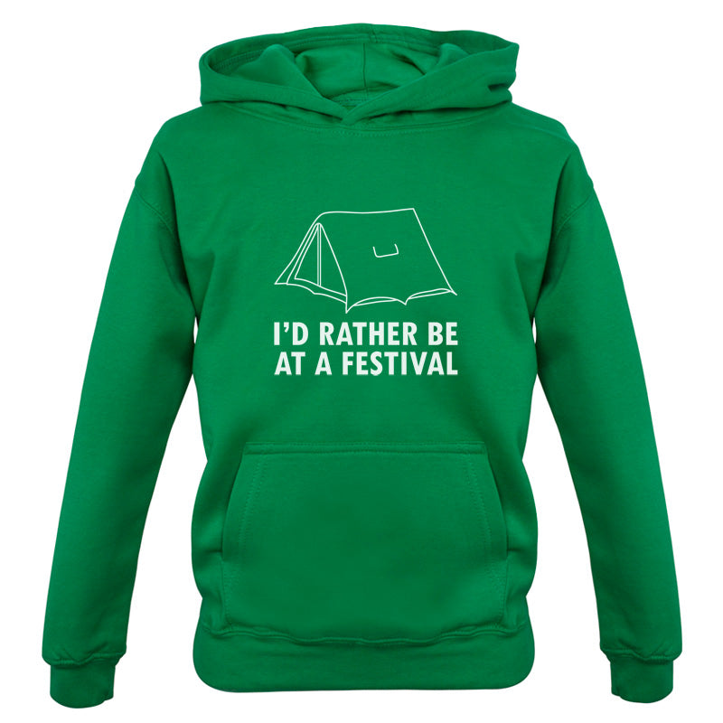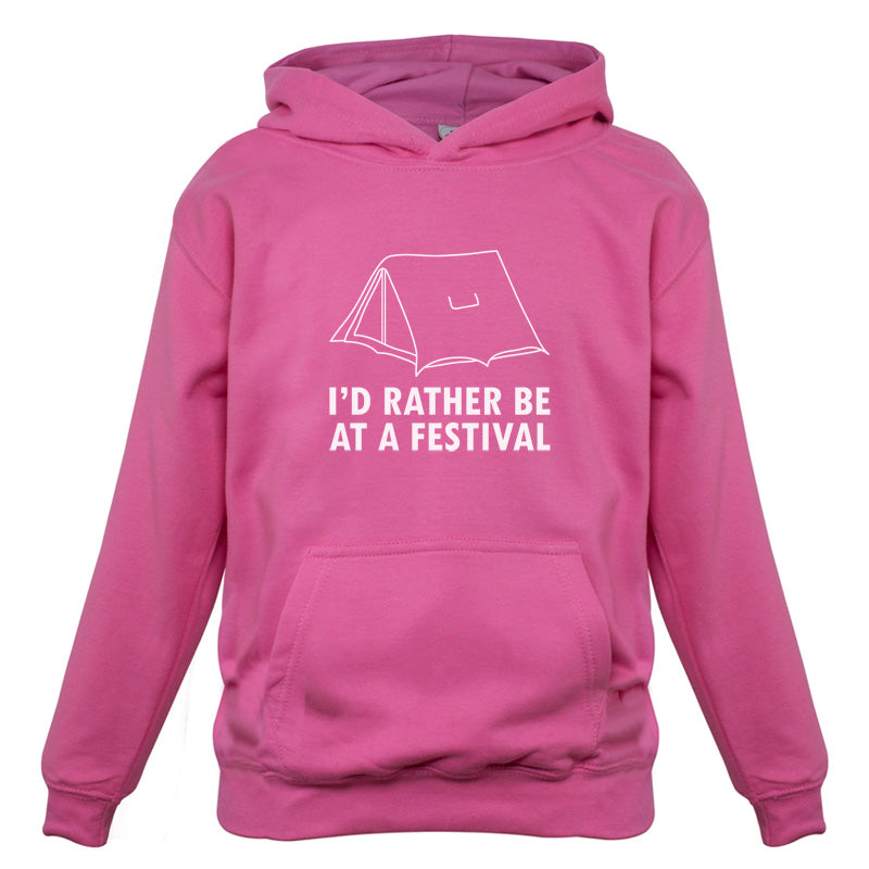 Kids Hoodie: Our kids unisex style I'd Rather Be At A Festival Hoodie is printed on our 300 GSM kangaroo pocket hooded top and is available on 7 different Colours.